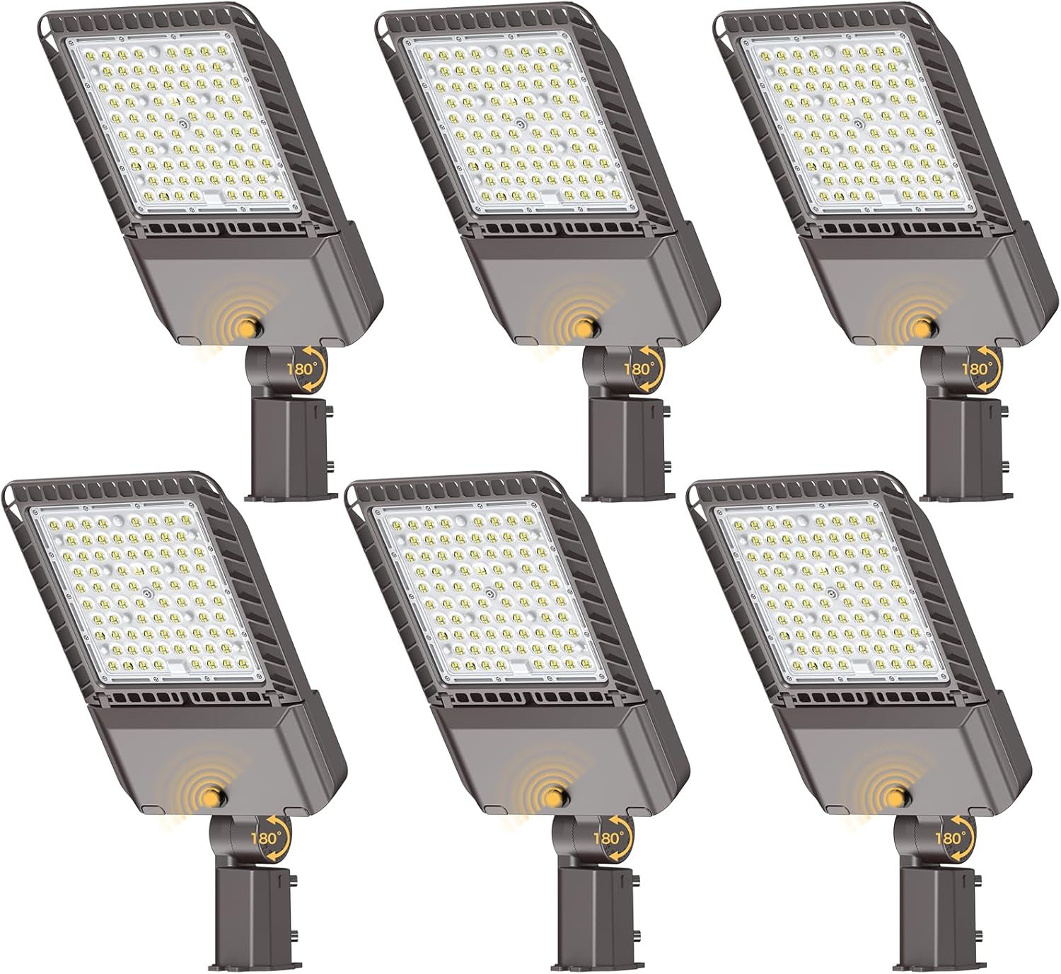 180W LED Parking Lot Lights Commercial Area Oudoor Lighting Street Light with Dusk to Dawn Photocell 32400Lm(180LM/W) 6000K IP65 Waterproof 100-277V for Driverway, Parking Lot 6 Pack
