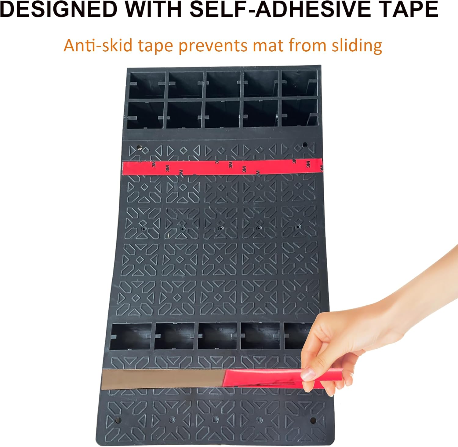- Self adhesive: Convenient self adhesive backing can be quickly installed on any clean and dry garage floor to ensure long-term stable placement