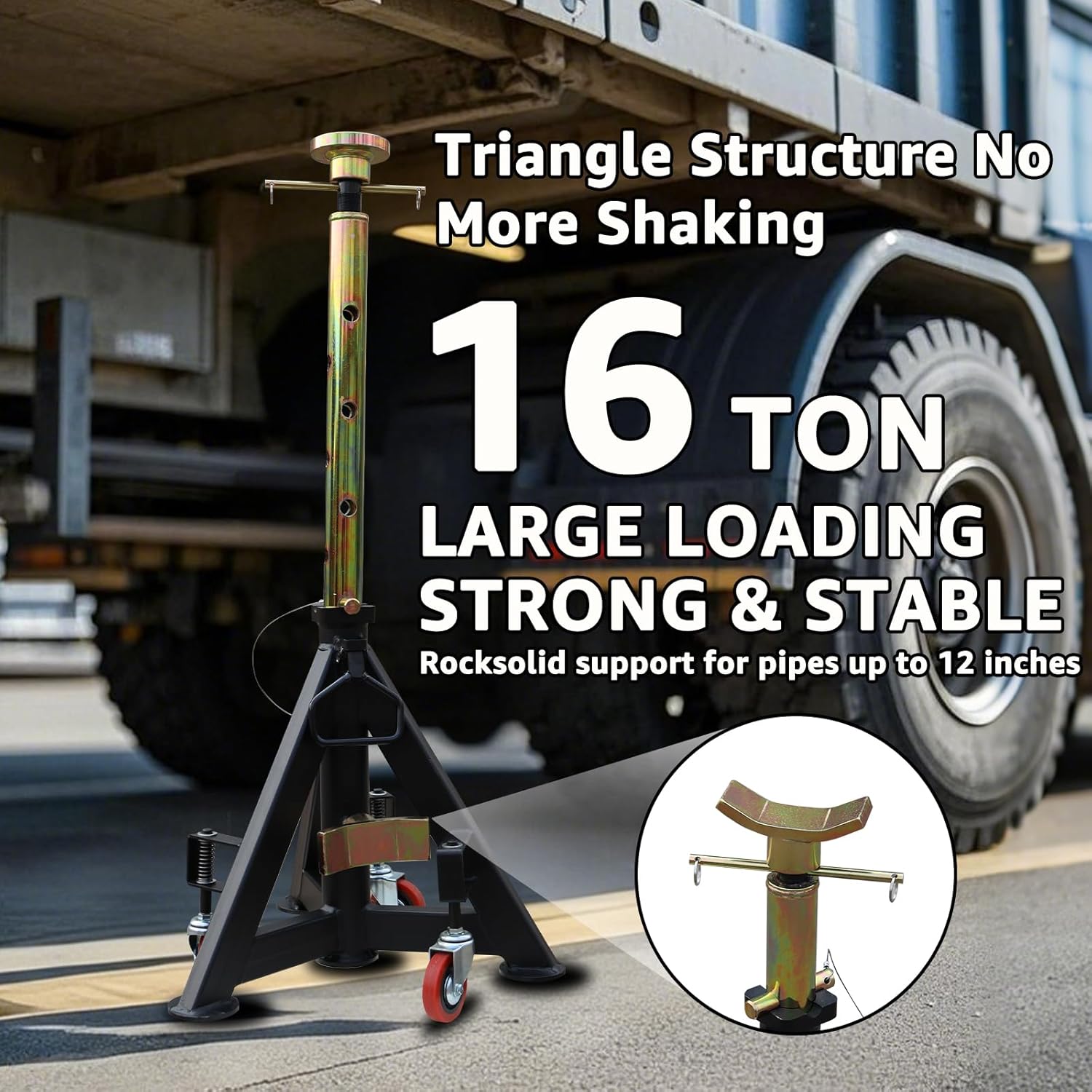 - 【Built for Heavy Loads – Industrial-Grade Strength】Each jack stand supports up to 35,000 lbs (16 tons), made with reinforced steel and a stable triangular base. Designed for heavy-duty use with trucks, RVs, SUVs, and commercial vehicles—perfect for long-term, stable support without flexing.