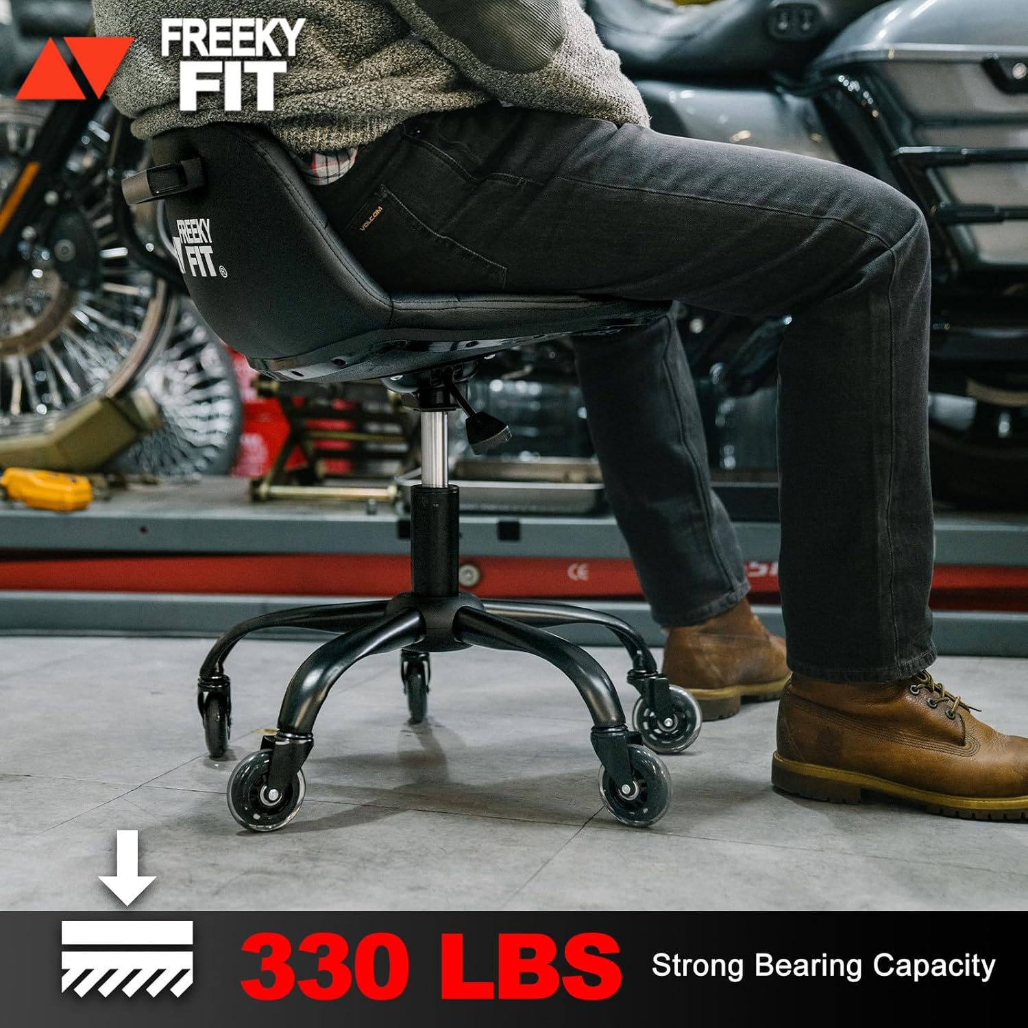 - ăEasy to MoveăThe rolling stool with 5 upgraded smooth rubber wheels,rolling casters enhance mobility, easily over cracks and debris on floor,the flexible 360° swivel garage chair provides larger range of motion and movement