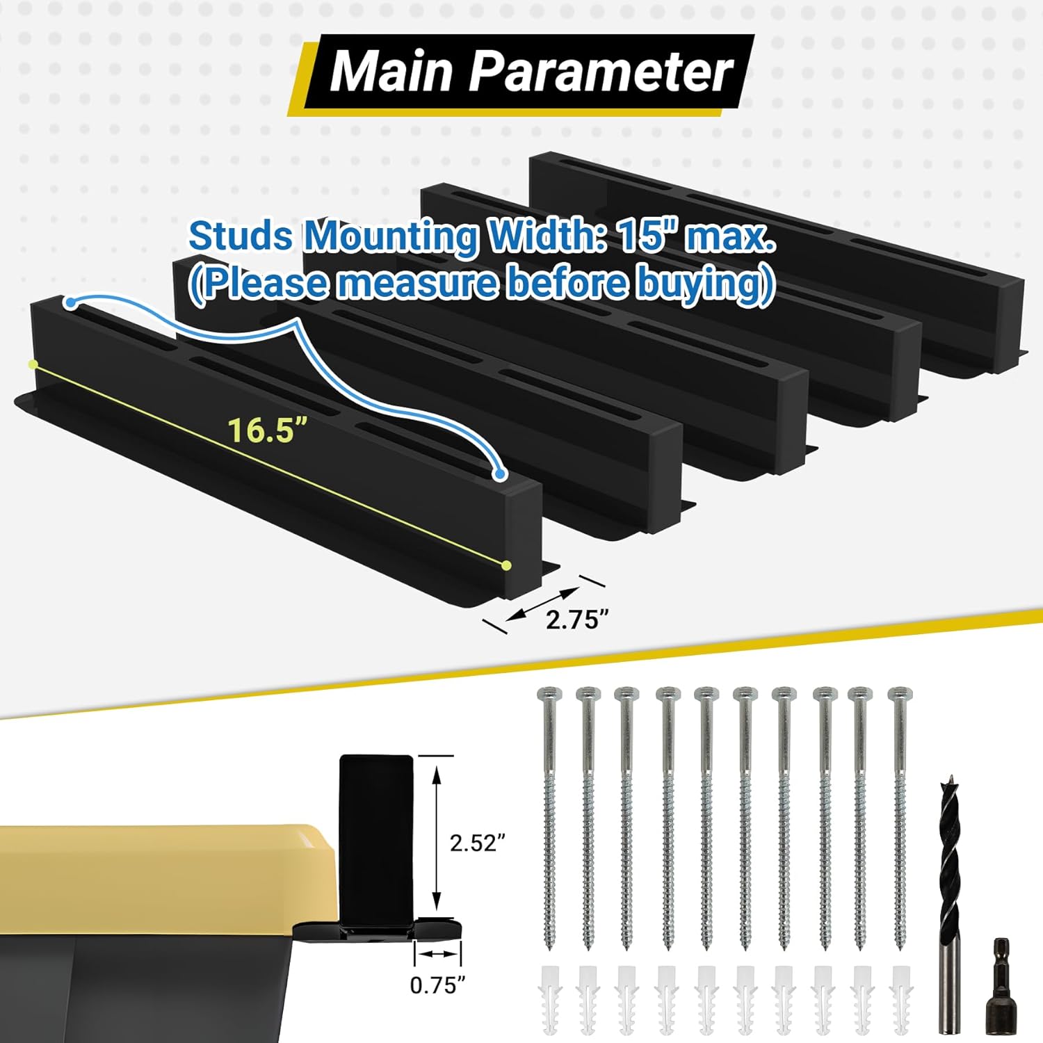 - Expandable T-shaped Structure: Our ceiling storage racks have a distinct T-shaped design. When mounted horizontally, they can hold more boxes. You can purchase extra sets to expand your storage. (Dimensions: 16.6βL x 2.75βW x 2.8βH)