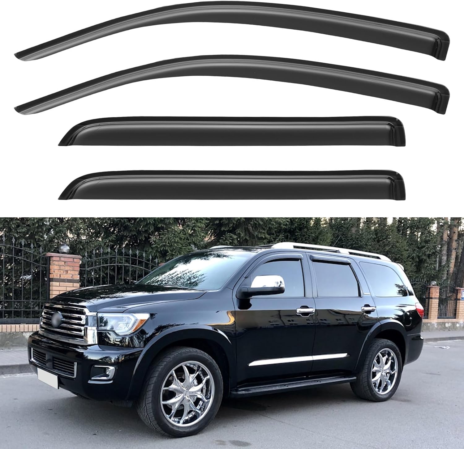 - ăPerfect FităYQAUTEC 4Pcs Out-Channel Window Visors Rain Guards Shield fit for 2008 2009 2010 2011 2012 2013 2014 2015 2016 2017 2018 2019 2020 2021 2022 Toyota Sequoia, Side Window Vent Wind Deflectors Visors Shades.