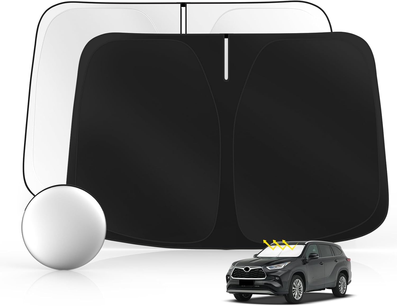 Windshield Sun Shade for Toyo-ta Highlander (L LE XLE Limited Platinum) 2020-2025 2026 Foldable Sunshade Custom Fit Front Window Car Interior Accessories Protector Blocks UV Rays