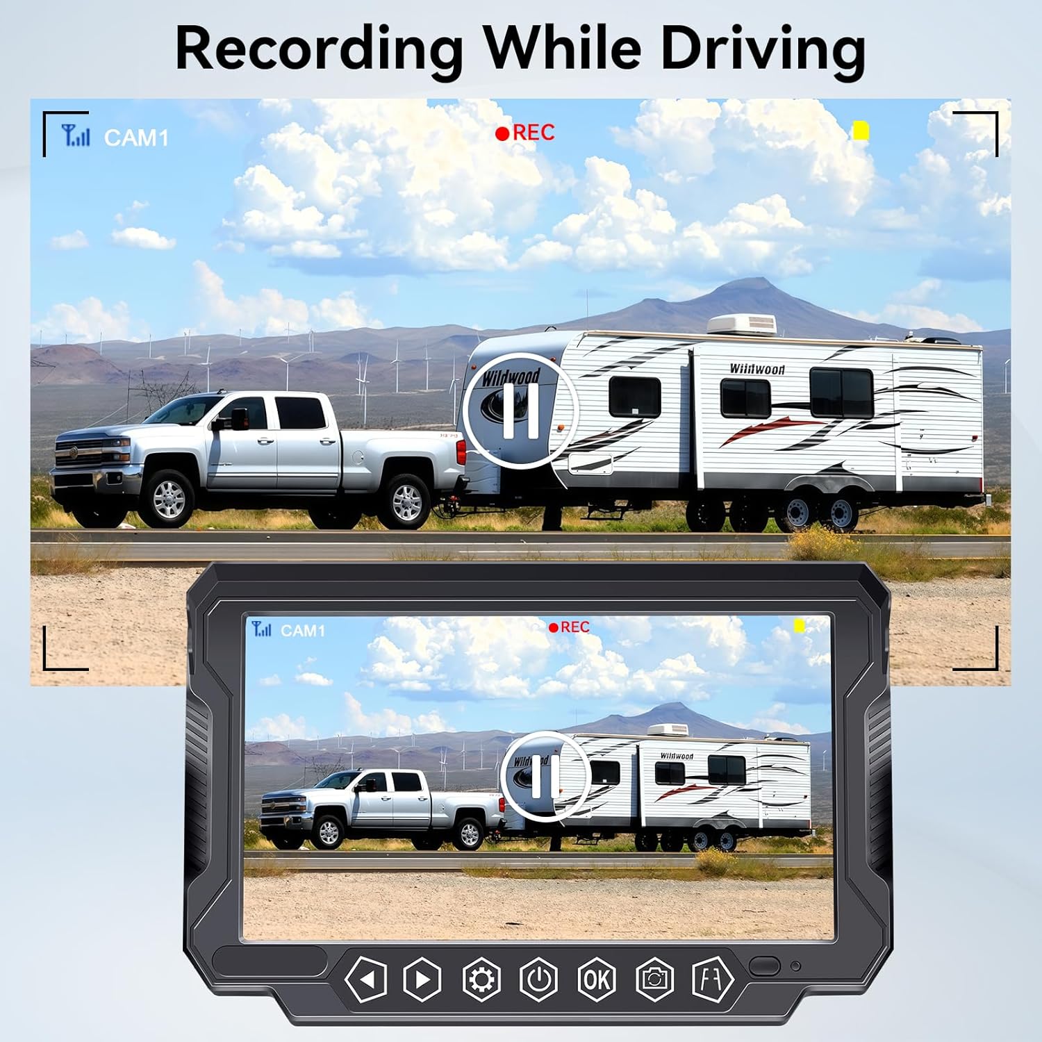 - Enhance Safety with 170° Wide-Angle View: Enjoy clear 1080P HD images with a 170° wide-angle for safe reversing in tight spaces. Perfect for RVs, trailers, campers, and boats, this wireless RV backup camera ensures safe parking and maneuvering in any situation. Experience peace of mind with every drive.