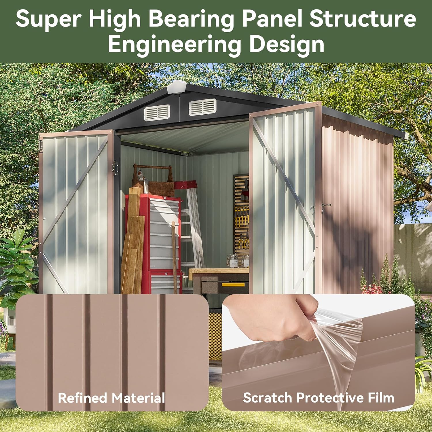 Aoxun 6.2x4 FT Shed Outdoor Storage Shed with Lockable Doors & Slooping Roof Metal Garden Tool Shed for Backyard, Patio, Poolside (Brown)
