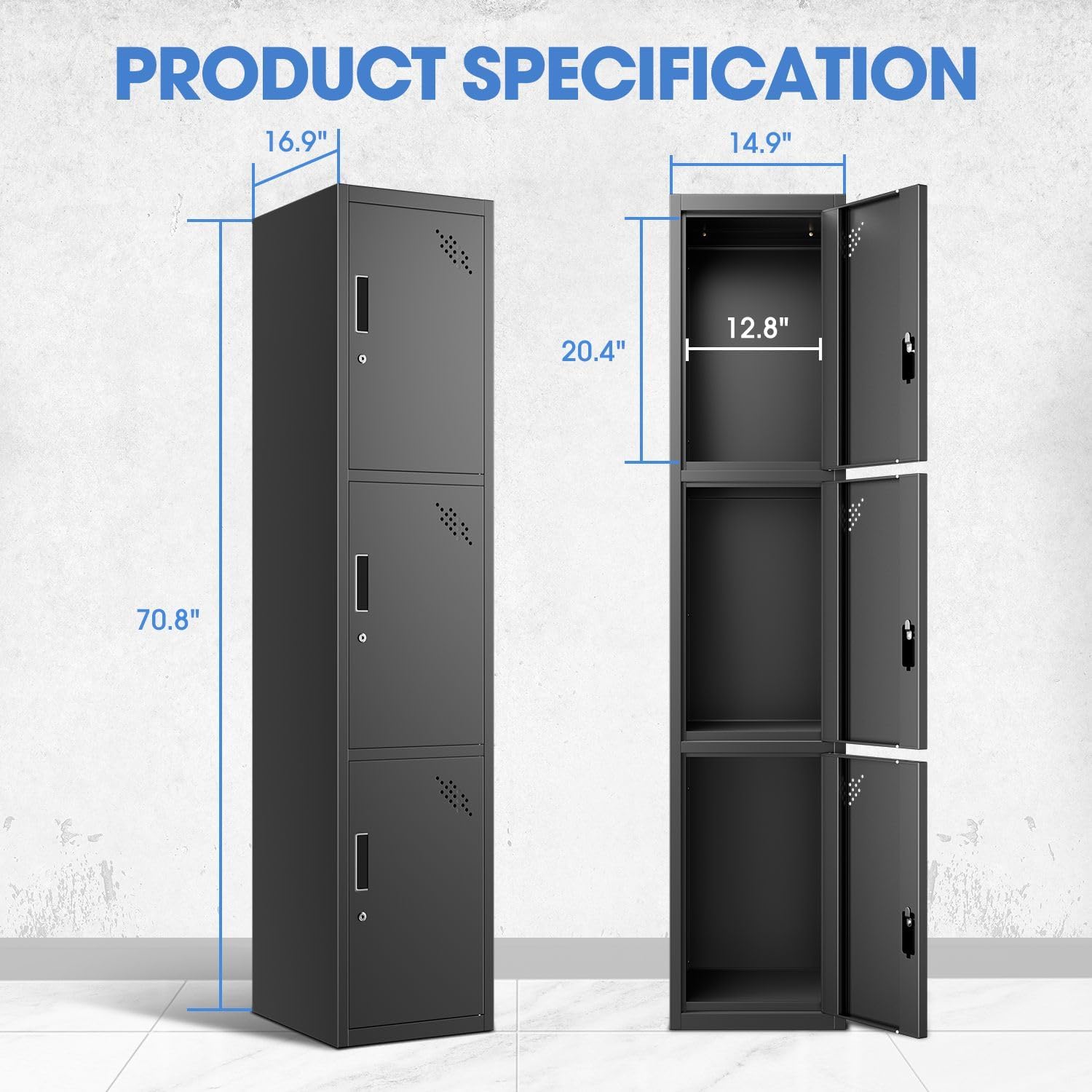 - PRACTICAL SPACE DESIGN - The storage cabinet metal includes 3 separated space provide adaptability and convenience; The cabinet door adopts a breathable design to reduce the possibility of odor caused by long-term storage