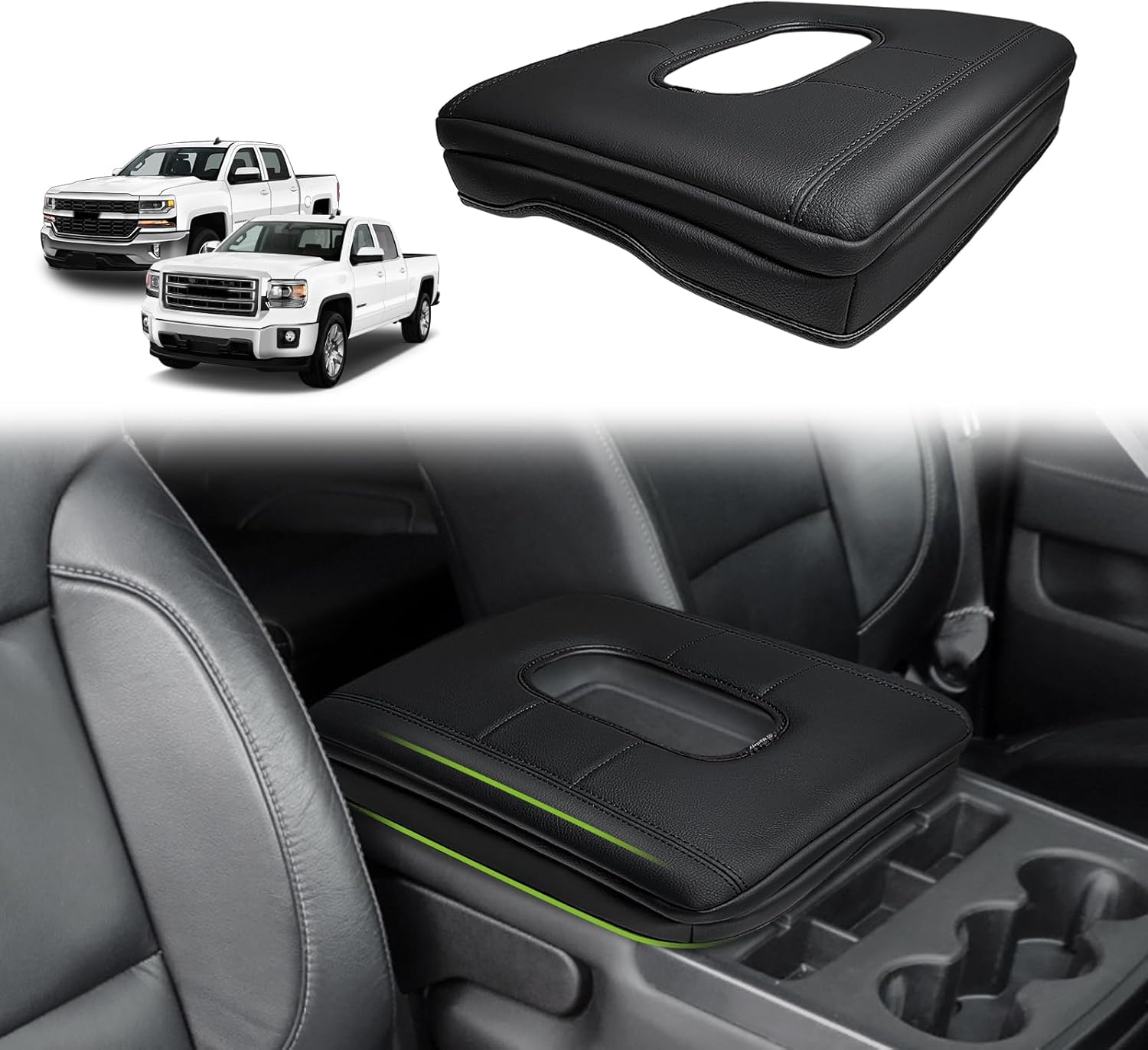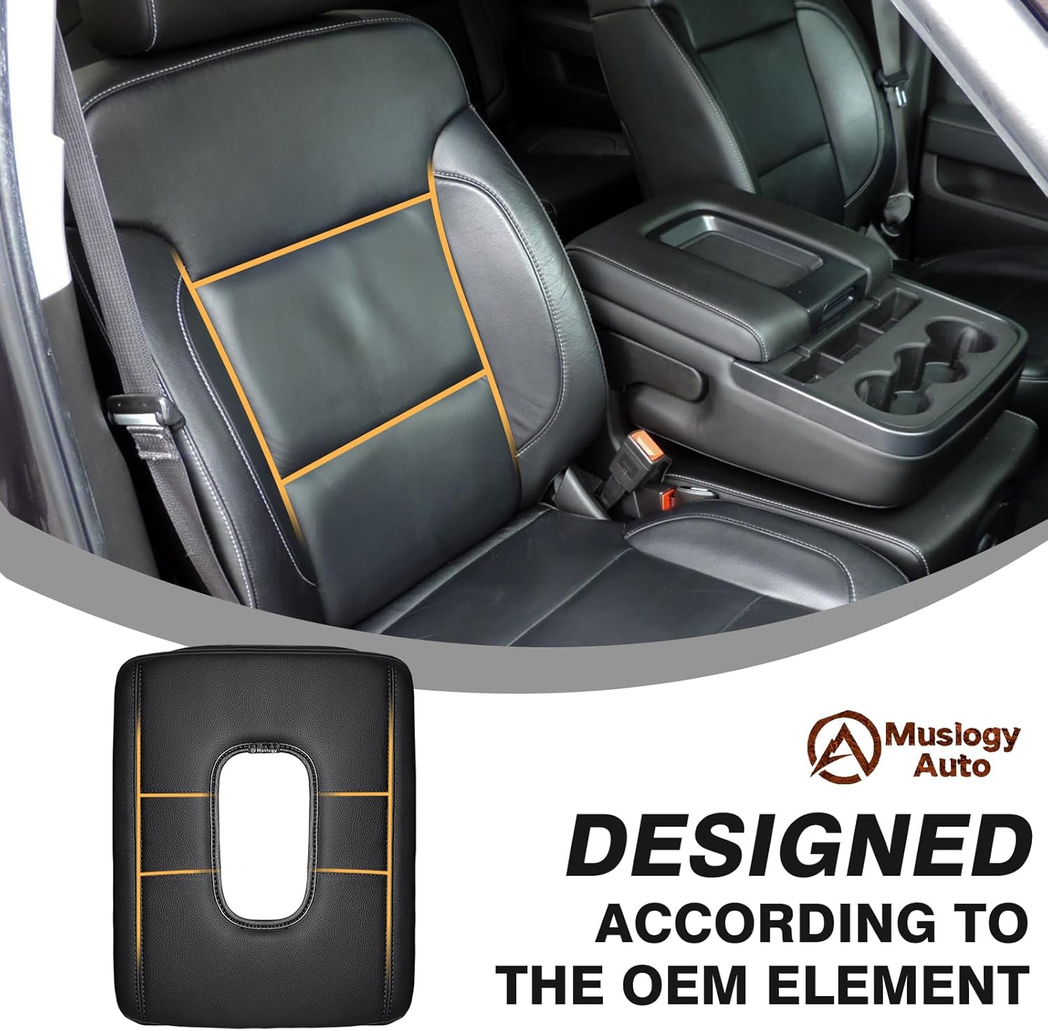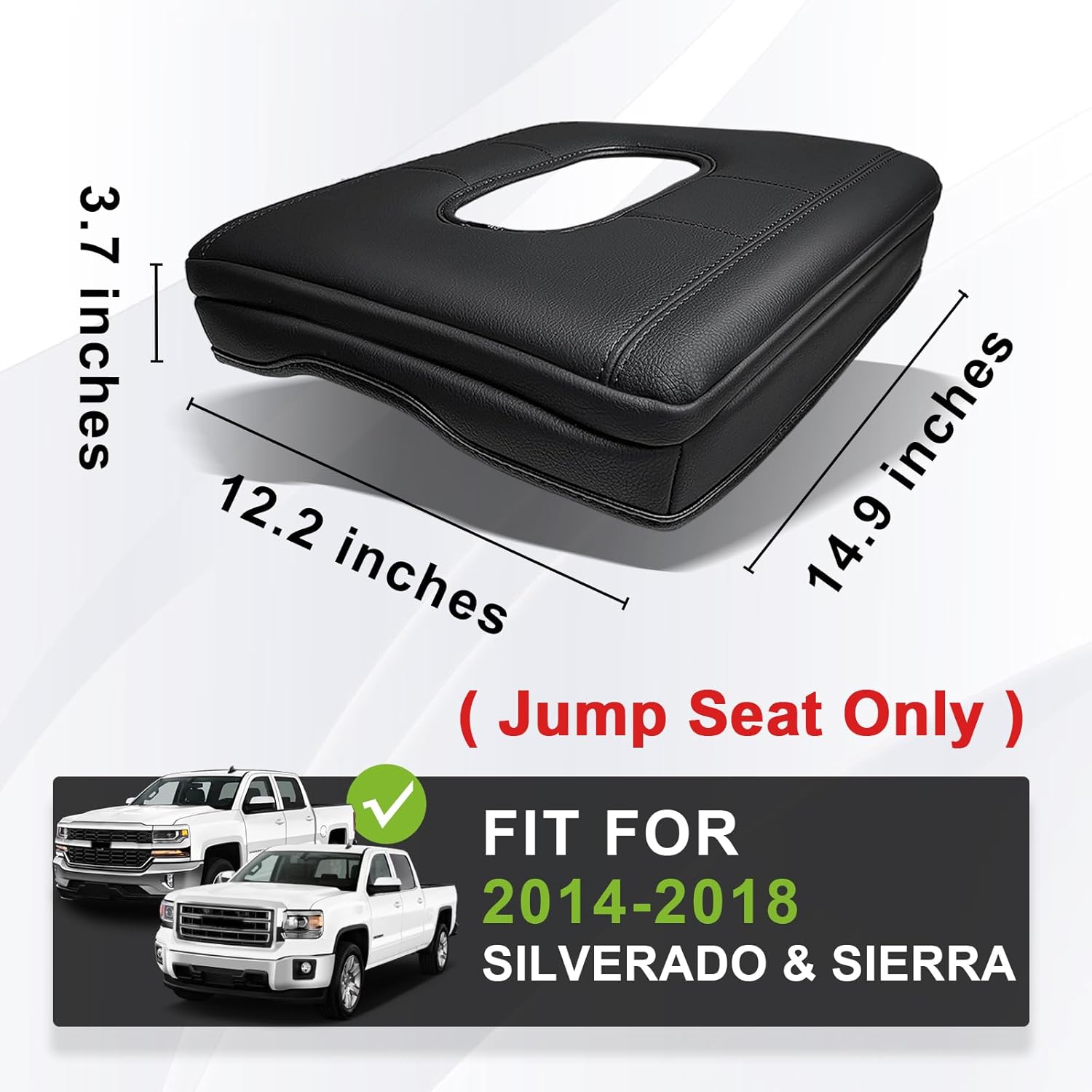 Muslogy Center Console Armrest Cover for Chevy Silverado & GMC Sierra 1500 2500 3500HD 2014-2018 Comfort Armrest Pad Arm Rest Cushion Vegan Leather Protector 1-Inch Extra Thick(Jump Seat ONLY)