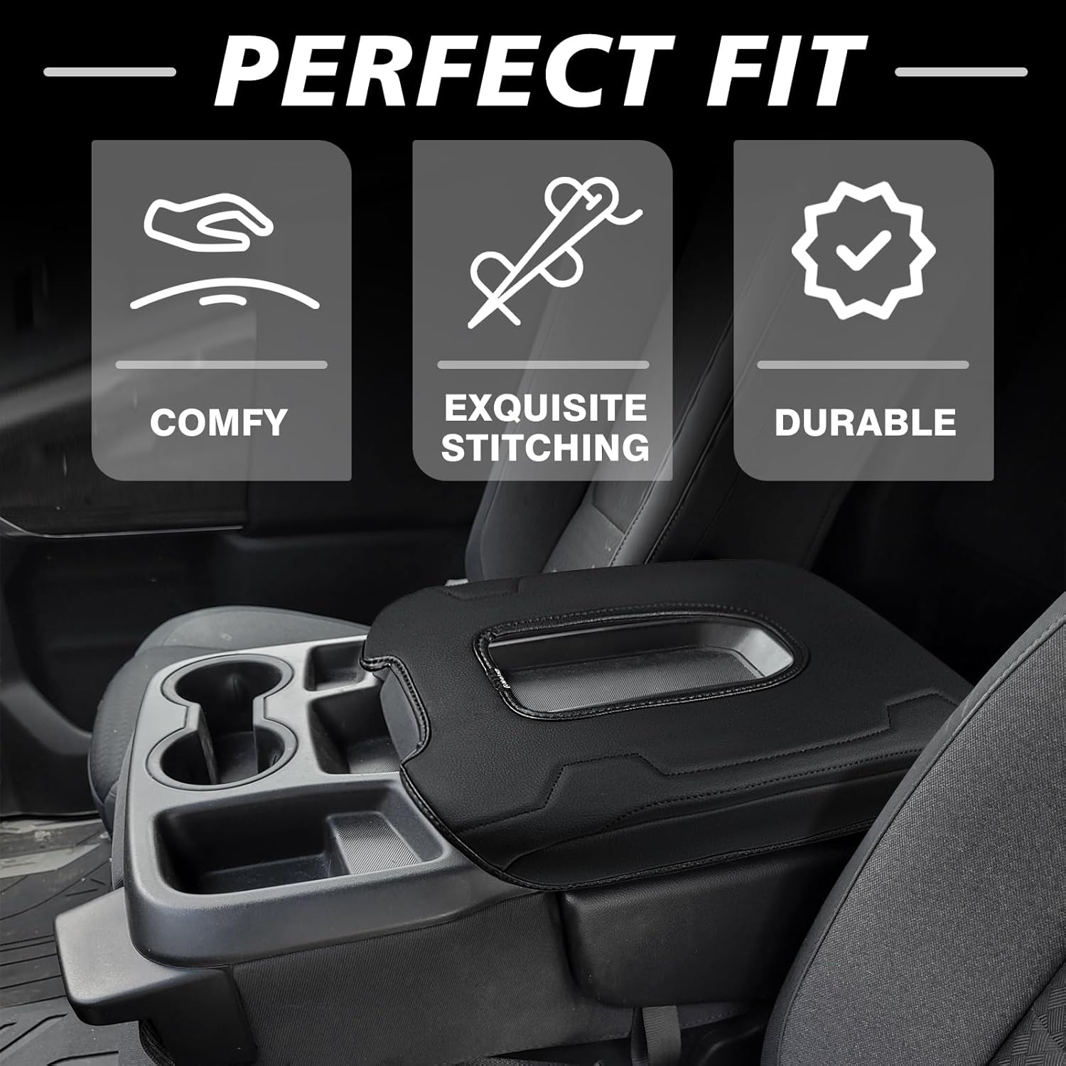 Muslogy Center Console Armrest Cover Compatible with Chevy Silverado & GMC Sierra 2019-2025 Comfort Armrest Pad Arm Rest Cushion Vegan Leather Protector Regular Thick(Jump Seat ONLY)