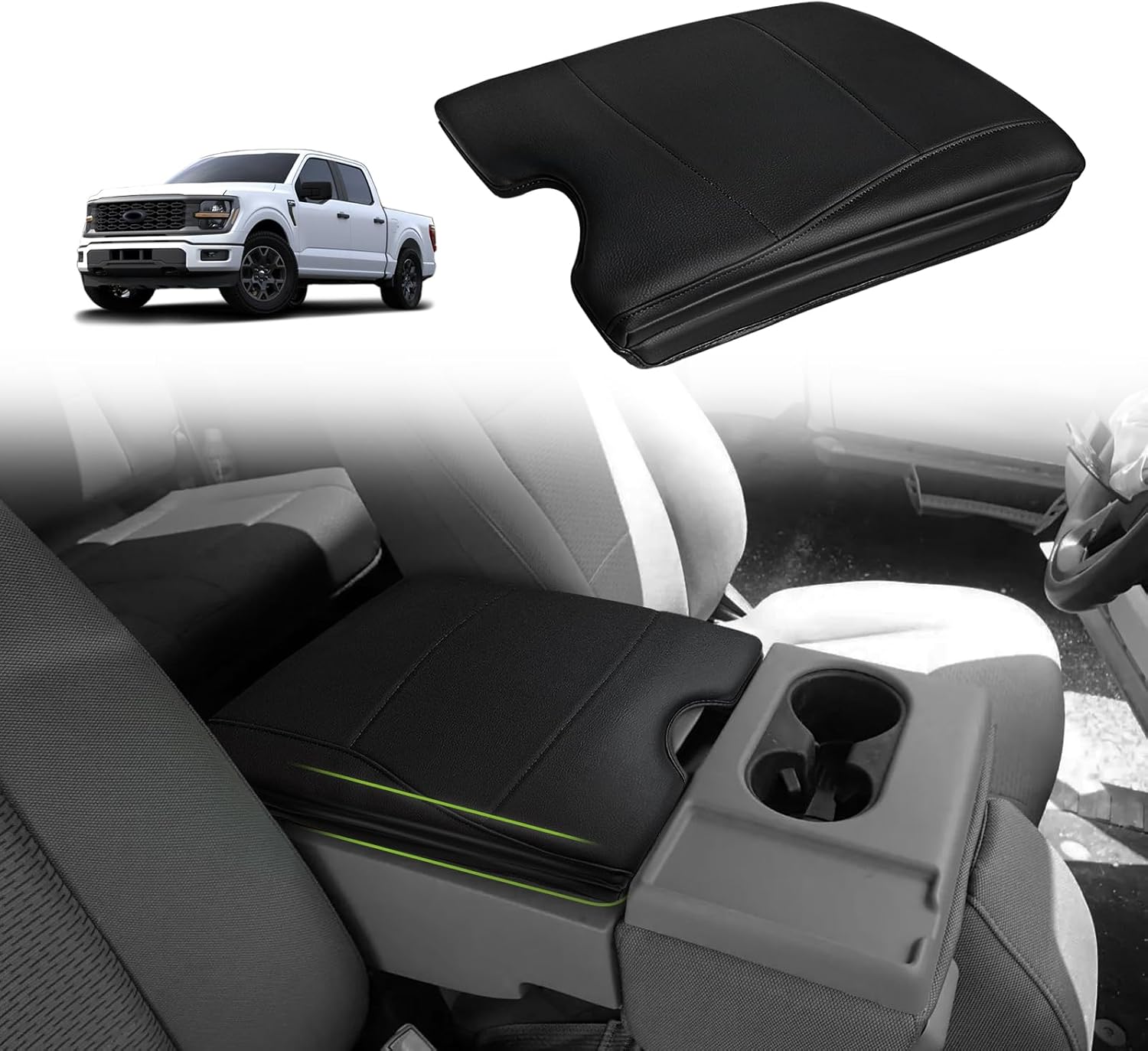 Muslogy Center Console Armrest Cover Compatible with Ford F-150 F150 2015-2024 2025 Comfort Armrest Pad Arm Rest Cushion Vegan Leather Protector 1-Inch Extra Thick(Jump Seat ONLY)