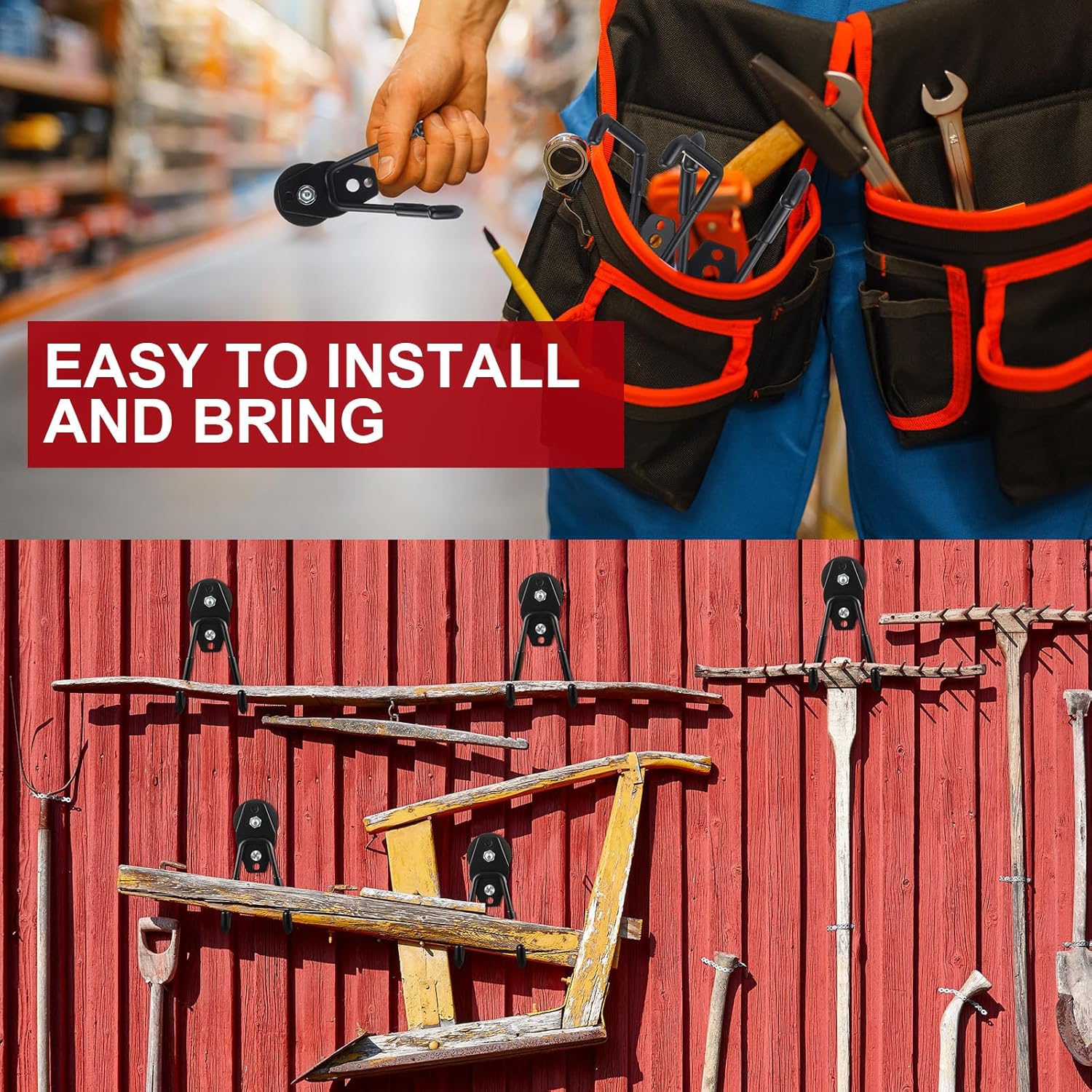 - Wide Range of Usages: compared with the single hook, our garden tool hooks have 2 holes, which can easily support the weight and can hang most items; Applicable to scenes such as kitchens, garages, warehouses, offices, etc. which can accommodate various tools and equipment, such as hoses, skates, gym bags, shovel, rake, broom, mop and other garden tools
