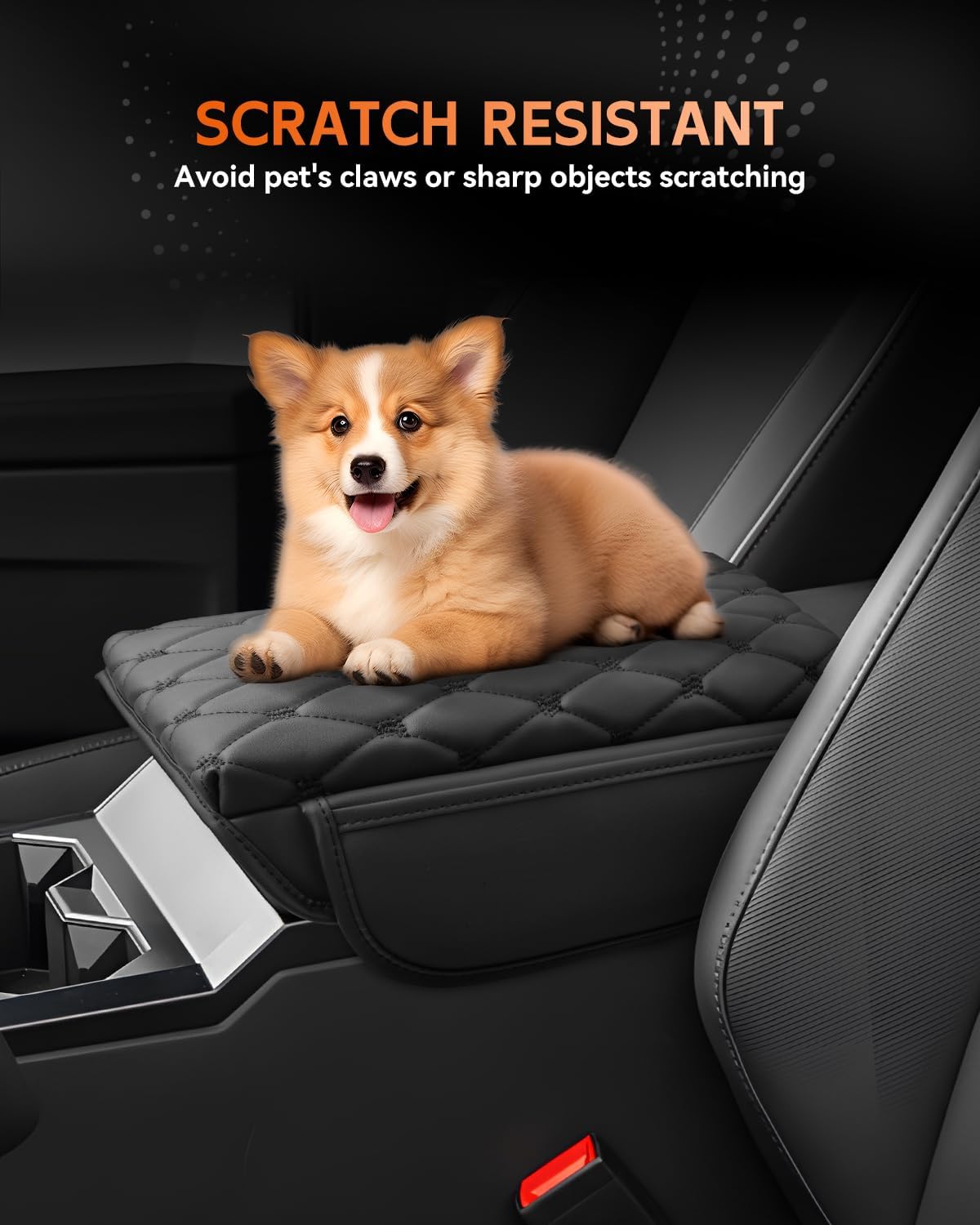 - [Excellent Scratch Resistance] The car Armrest Cover is made of high quality PU microfiber leather, thick enough to keep out pet paws, dust and sticky fingers. The surface is waterproof, wear-resistant and durable, breathable, light weight and easy to wipe clean of dirt.