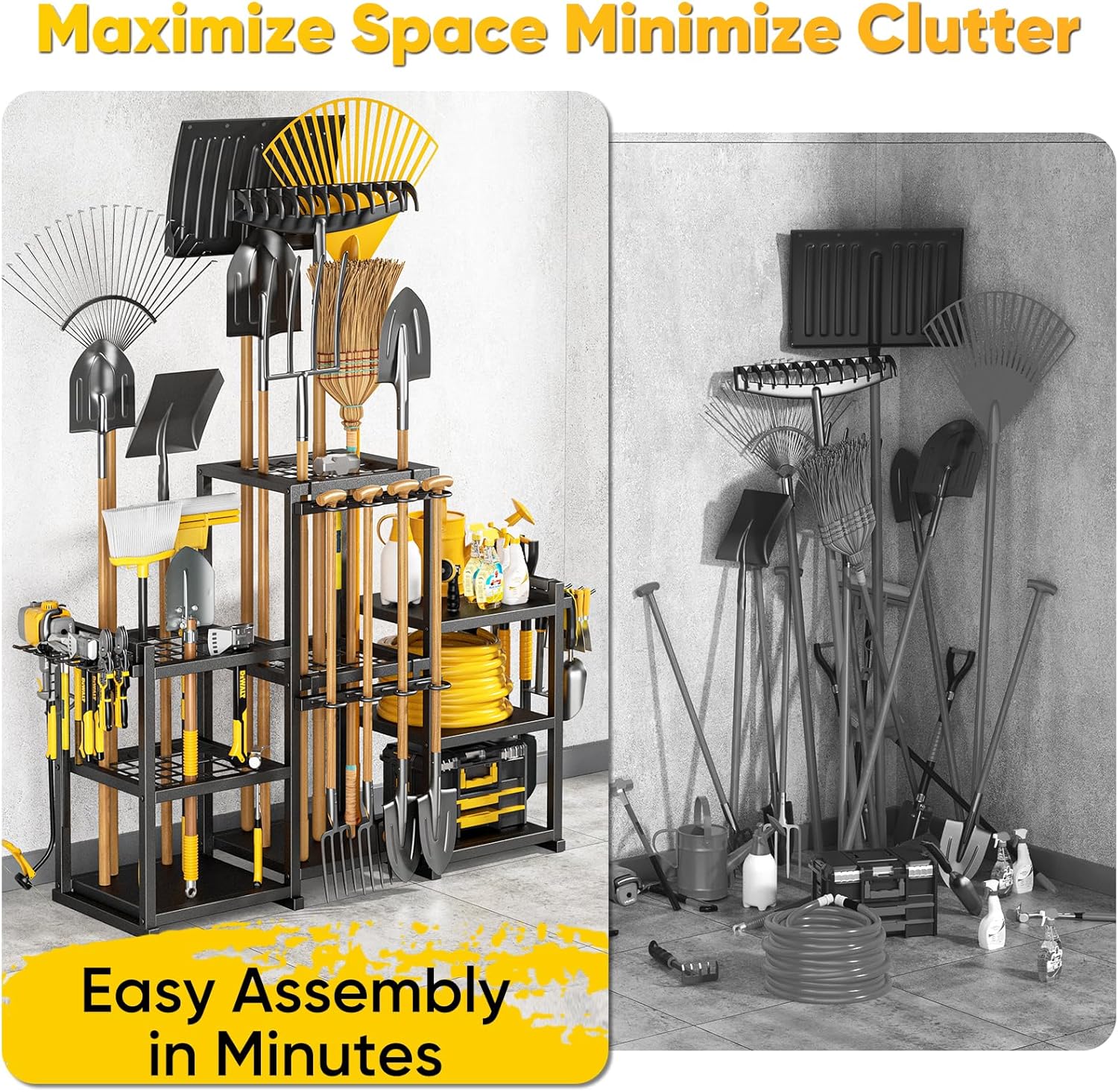 - HEAVY-DUTY & EASY ASSEMBLY: Constructed with reinforced, wear-resistant materials for long-lasting durability. This garden tool rack is built to withstand heavy use and offers quick, hassle-free installation so you can start organizing immediately.