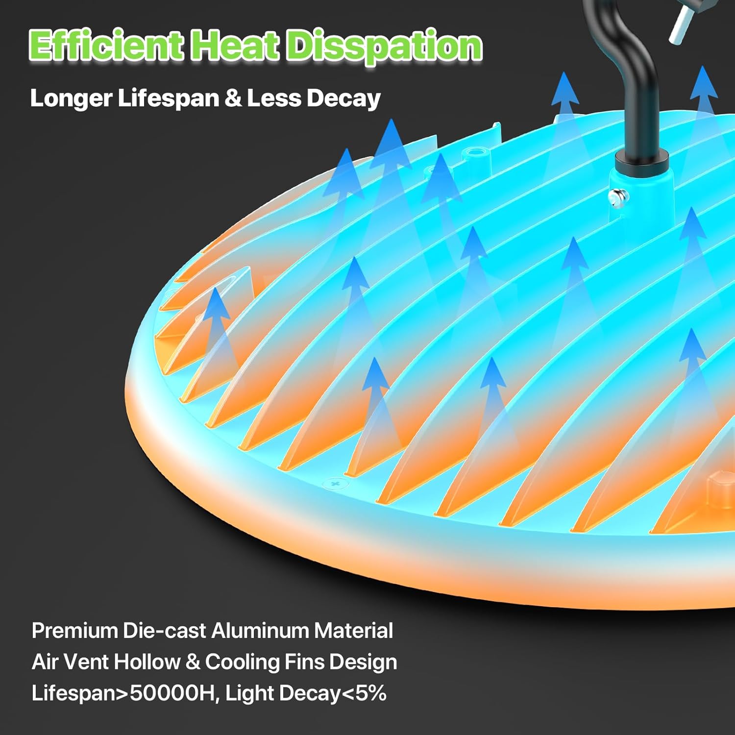 - Stable Performance: Features with pure aluminum housing, air vent hollow design and high cooling fin, makes this led high bay light thermal conductivity and ensures high performance for over 50,000 hours of continuous use. IP65 waterproof and IK08 shockproof grade, this high bay light can be used in various scenarios