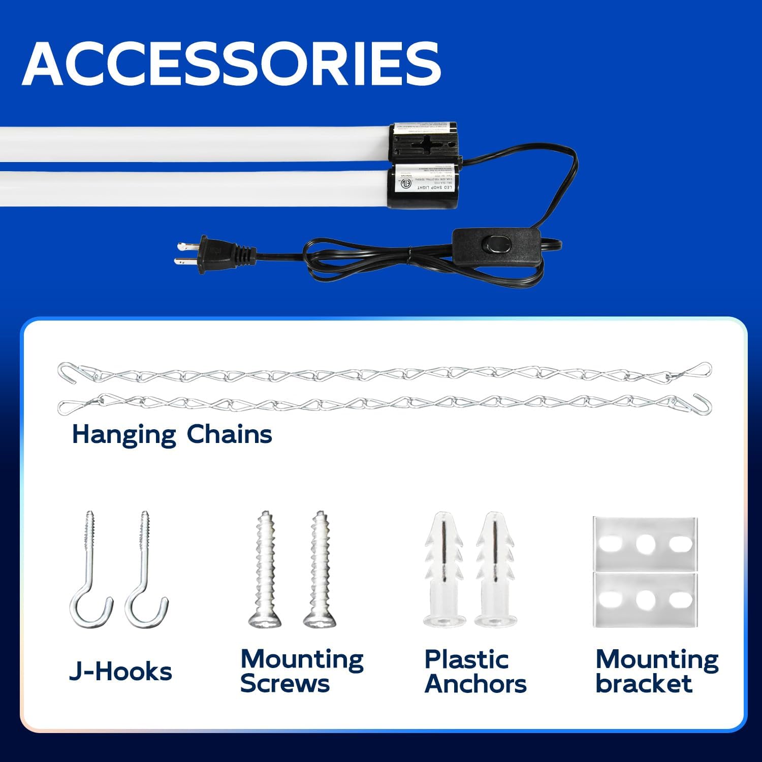 - β Easy Installation - Plug & Play. Come with 59" power cord with on/off switch and other small accessories. You can hanging it with the included hanging chains or directly mounted to the ceiling with the included mounting screws.