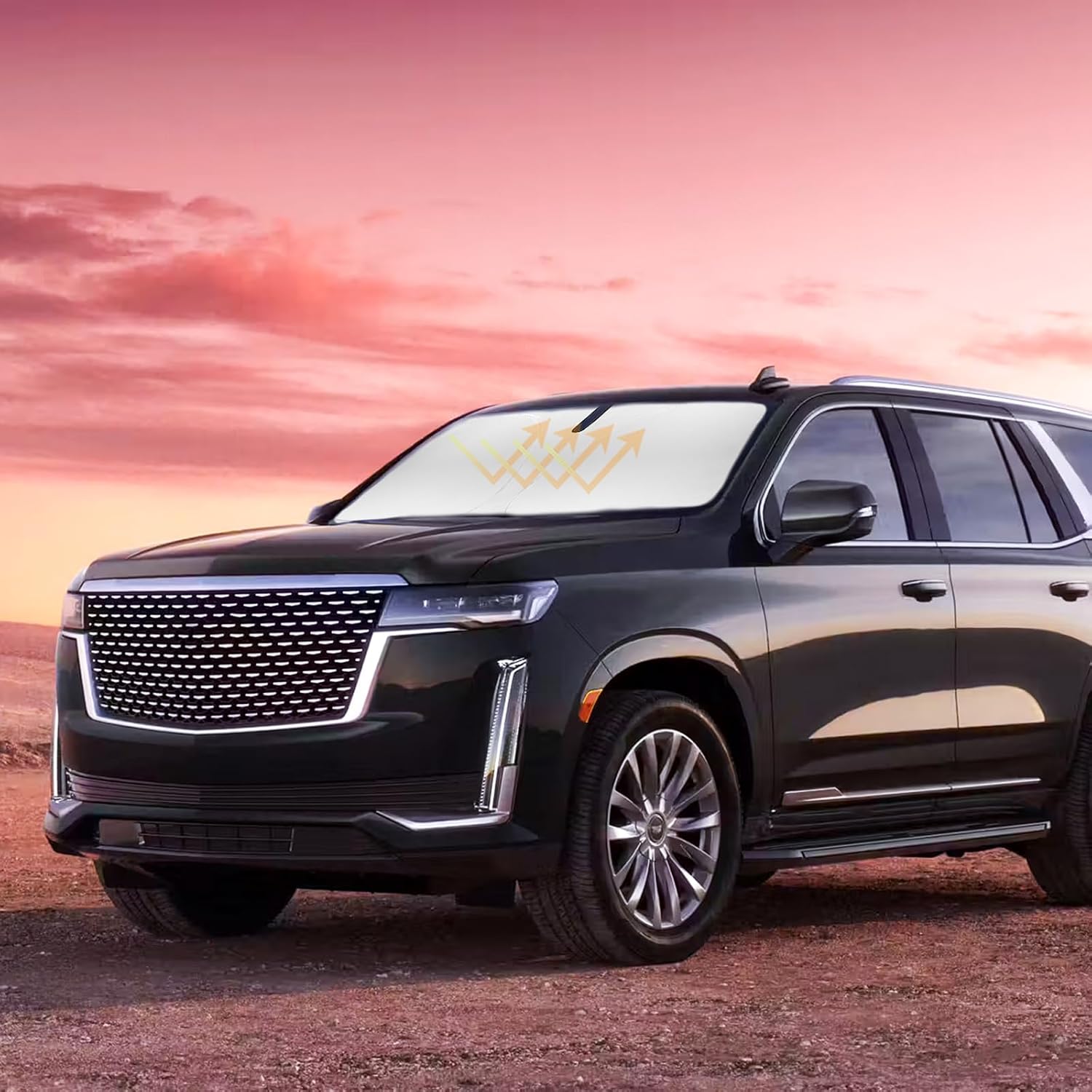- ăVehicle SpecificăOur Windshield Shade Cover custom fit for Cadillac Escalade 2021-2024 2025 2026 ,Full covered your windshield,No Gap,100% Perfect fit. The precise fit design and reinforced steel ring are sufficient to allow the sun shade to precisely fit the front window without the need for suction cups to hold it in place, effectively protecting your car from the sun's rays.