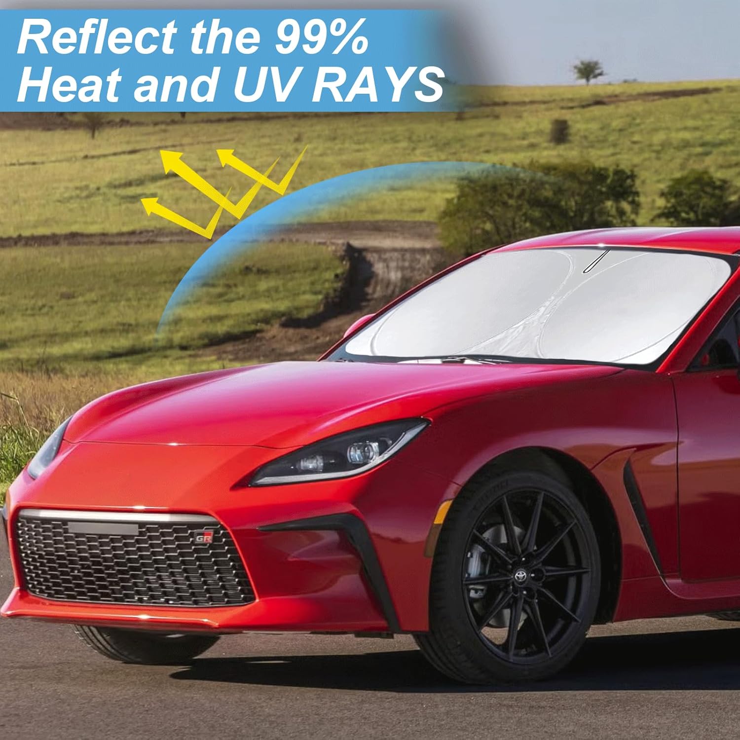 - [CUSTOM-FIT FRONT WINDSHIELD SUNSHADE] Automotive windshield sun shade is Specifically designed,which for Toyota 86/2022-2023 Toyota GR86 accessories. We have several size of car sunshade. Please measure your car size and refer to our size before your purchase. Once installed it won't have gaps, sags or slumps like other car sun shade windshield