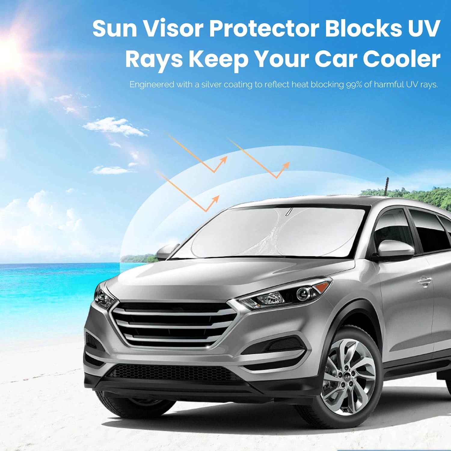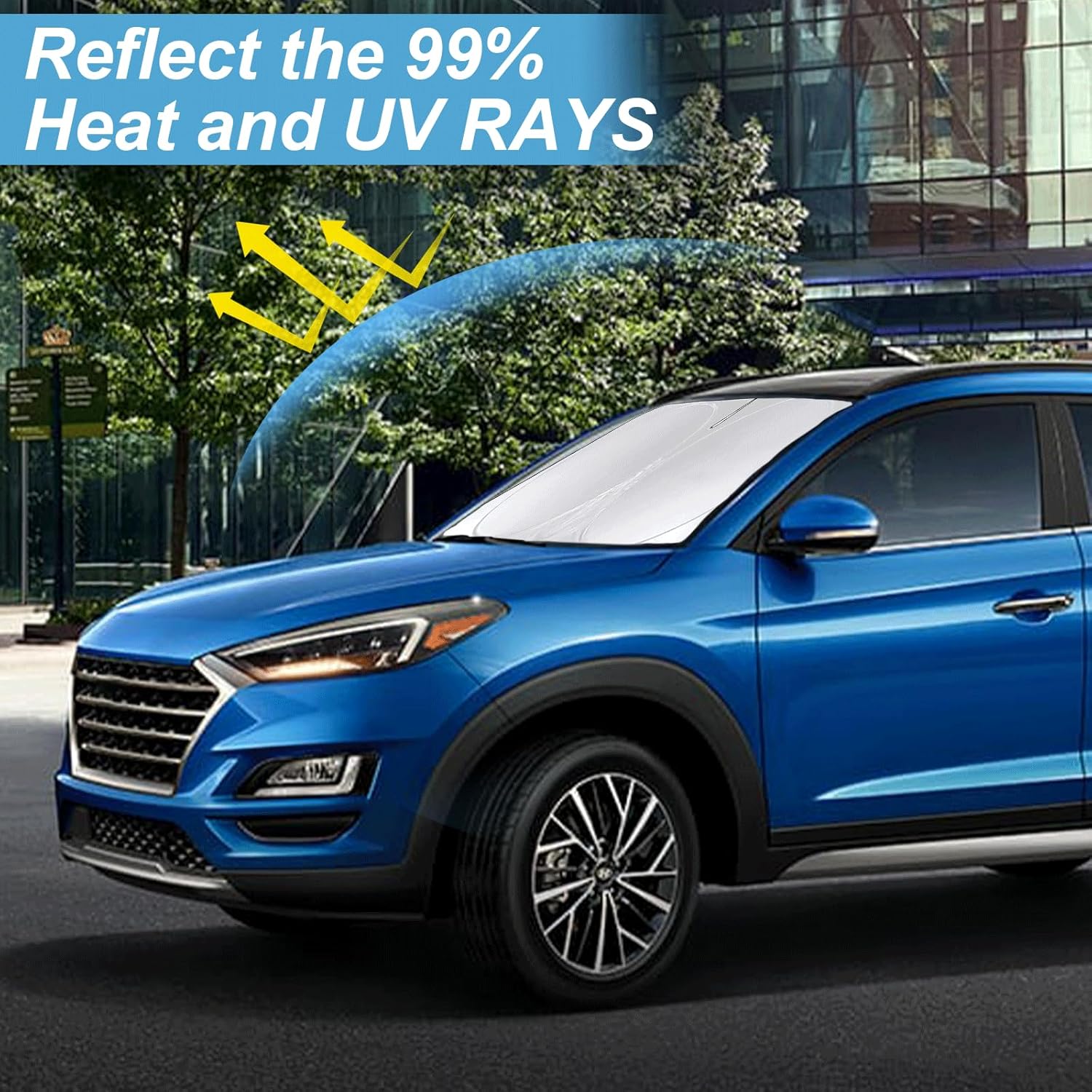- [CUSTOM-FIT FRONT WINDSHIELD SUNSHADE] Automotive windshield sun shade is Specifically designed,which for Hyundai Tucson 2016 2017 2018 2019 2020 2021 accessories. We have several size of car sunshade. Please measure your car size and refer to our size before your purchase. Once installed it won't have gaps, sags or slumps like other car sun shade windshield