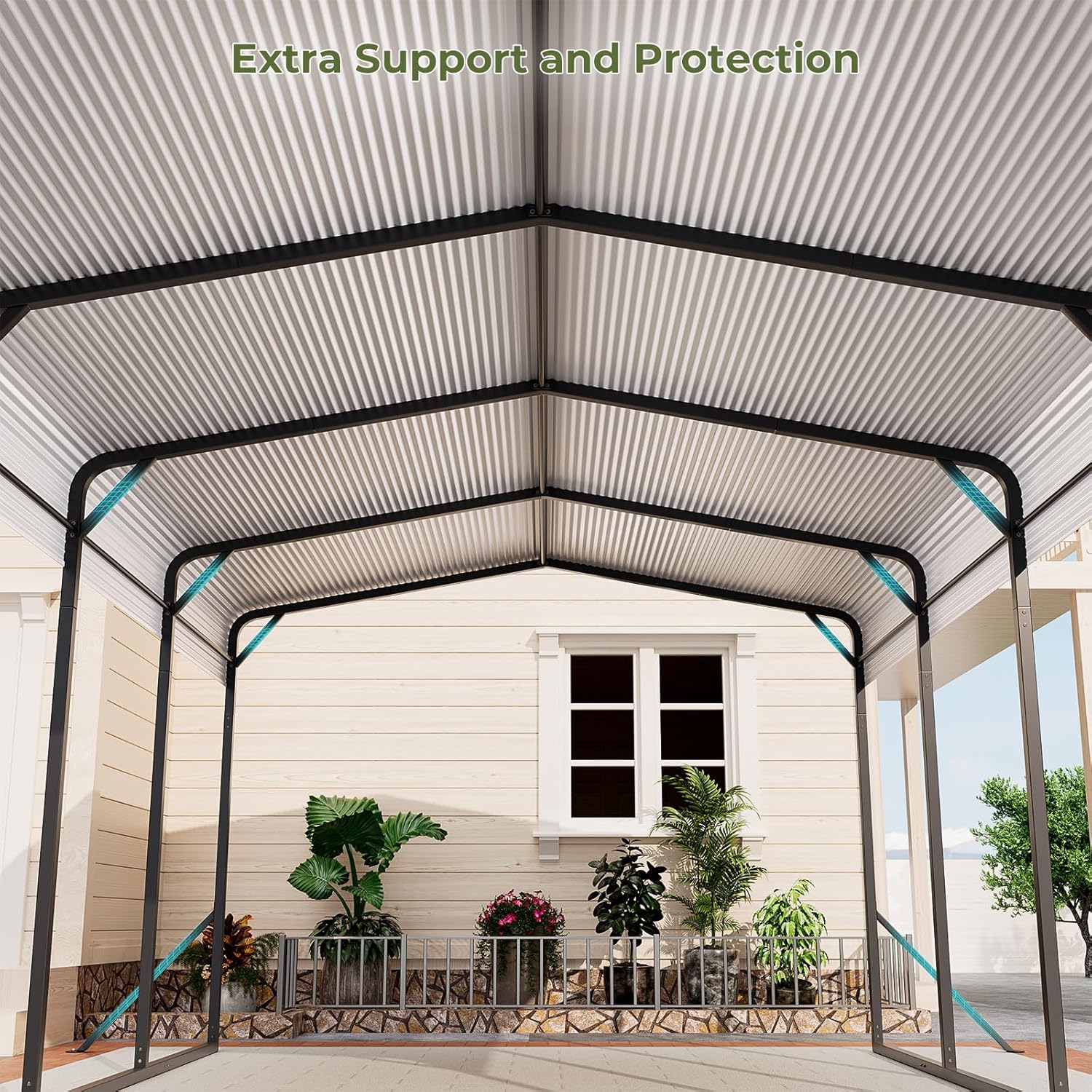 - Enhanced Stability: Built to last, this heavy duty metal carport features a reinforced structure with 4 extra support legs and additional diagonal rods, ensuring exceptional stability and resistance to wind and snow