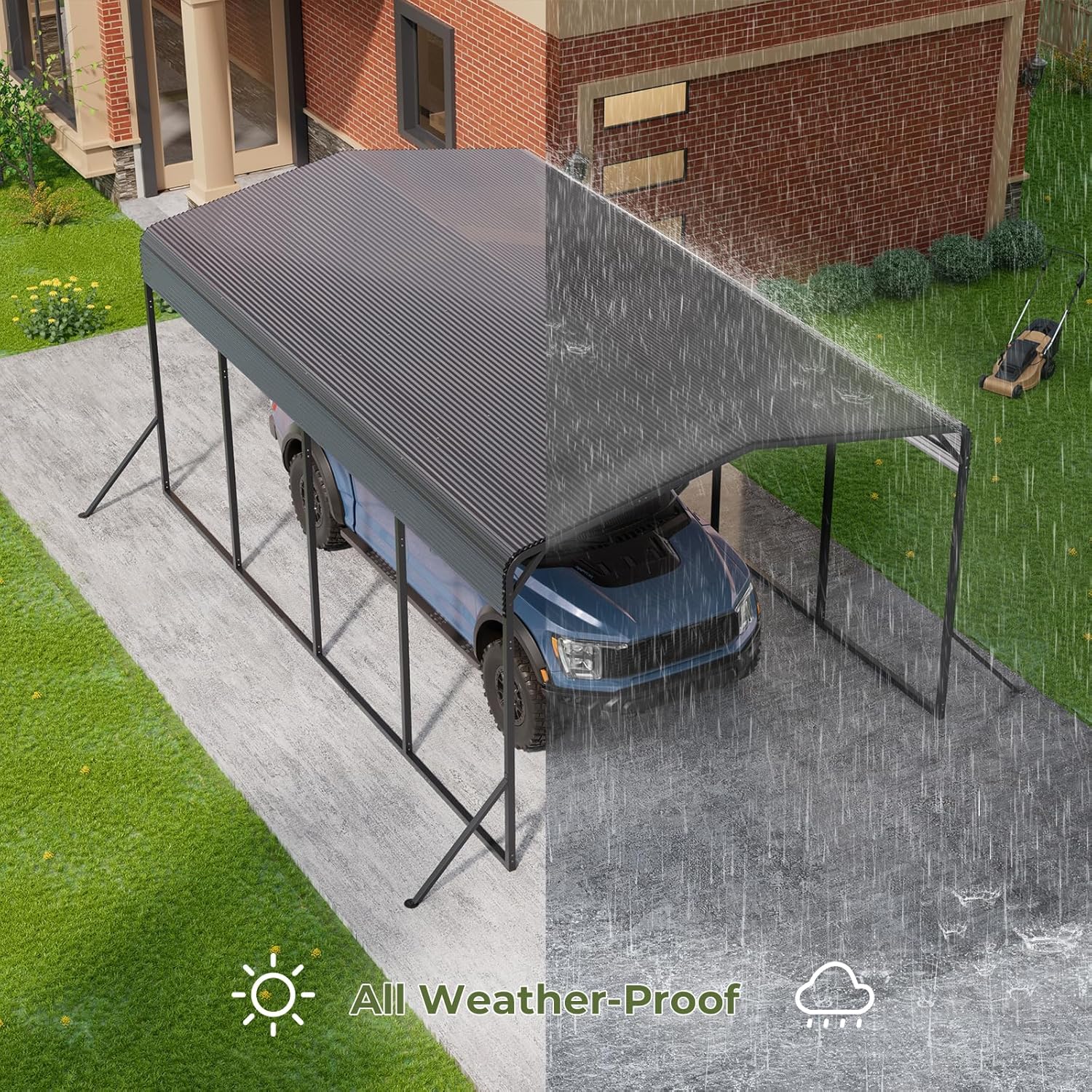 - Heavy-Duty Frame: Made with thickened square steel tubes and treated with a baked enamel finish, the 12x20 car port frame is rust-resistant and designed for long-term durability, providing reliable protection in any weather