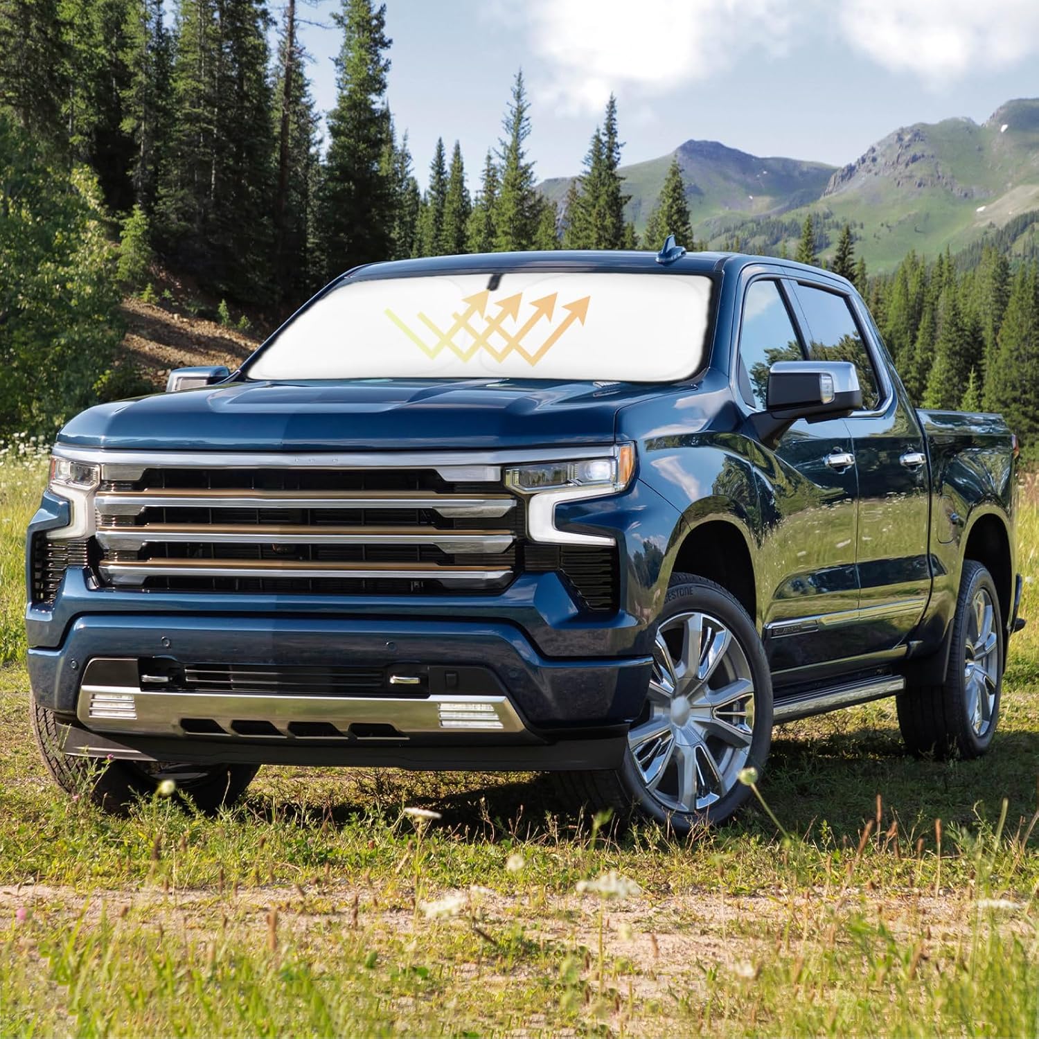 - ăVehicle SpecificăOur Windshield Shade Cover custom fit for 2019-2024 2025 2026 Chevy Silverado 1500, Base, Sport, Hybrid, A-Spec SUV Accessories,Full covered your windshield,No Gap,100% Perfect fit. The precise fit design and reinforced steel ring are sufficient to allow the sun shade to precisely fit the front window without the need for suction cups to hold it in place, effectively protecting your car from the sun's rays.
