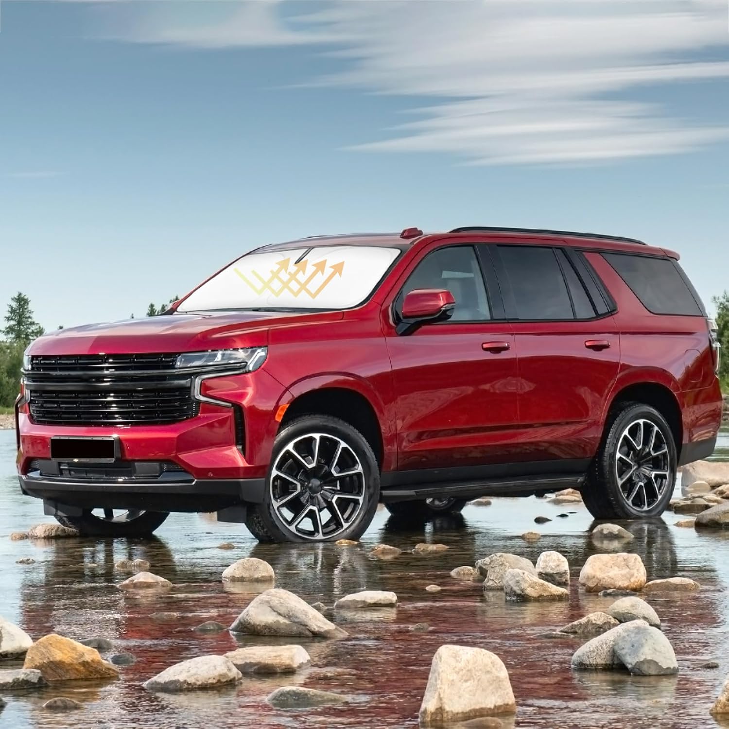 - ăVehicle SpecificăOur Windshield Shade Cover custom fit for 2021 2022 2023 2024 2025 Chevrolet Chevy Tahoe Accessories ,Full covered your windshield,No Gap,100% Perfect fit. The precise fit design and reinforced steel ring are sufficient to allow the sun shade to precisely fit the front window without the need for suction cups to hold it in place, effectively protecting your car from the sun's rays.