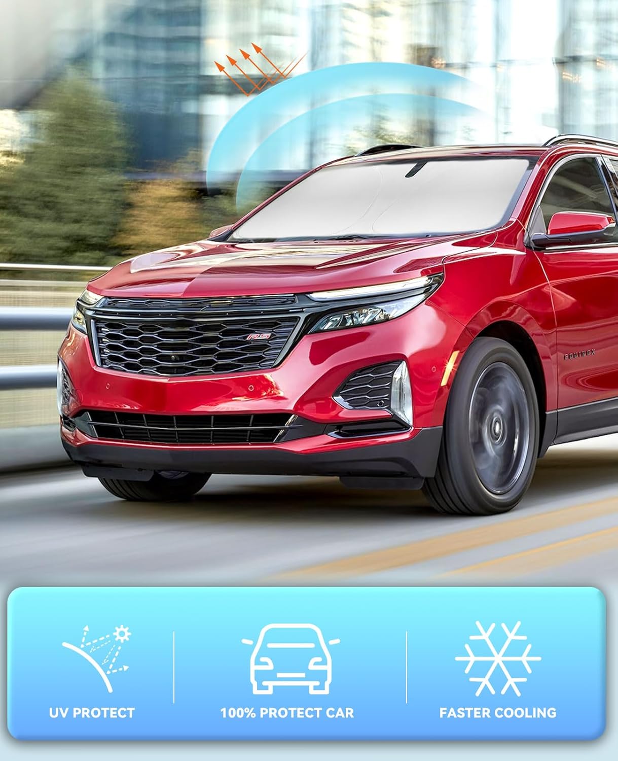- ăVehicle SpecificăOur Windshield Shade Cover custom fit for 2010 2018-2024 2025 Chevy Chevrolet Equinox Accessories ,Full covered your windshield,No Gap,100% Perfect fit. The precise fit design and reinforced steel ring are sufficient to allow the sun shade to precisely fit the front window without the need for suction cups to hold it in place, effectively protecting your car from the sun's rays.