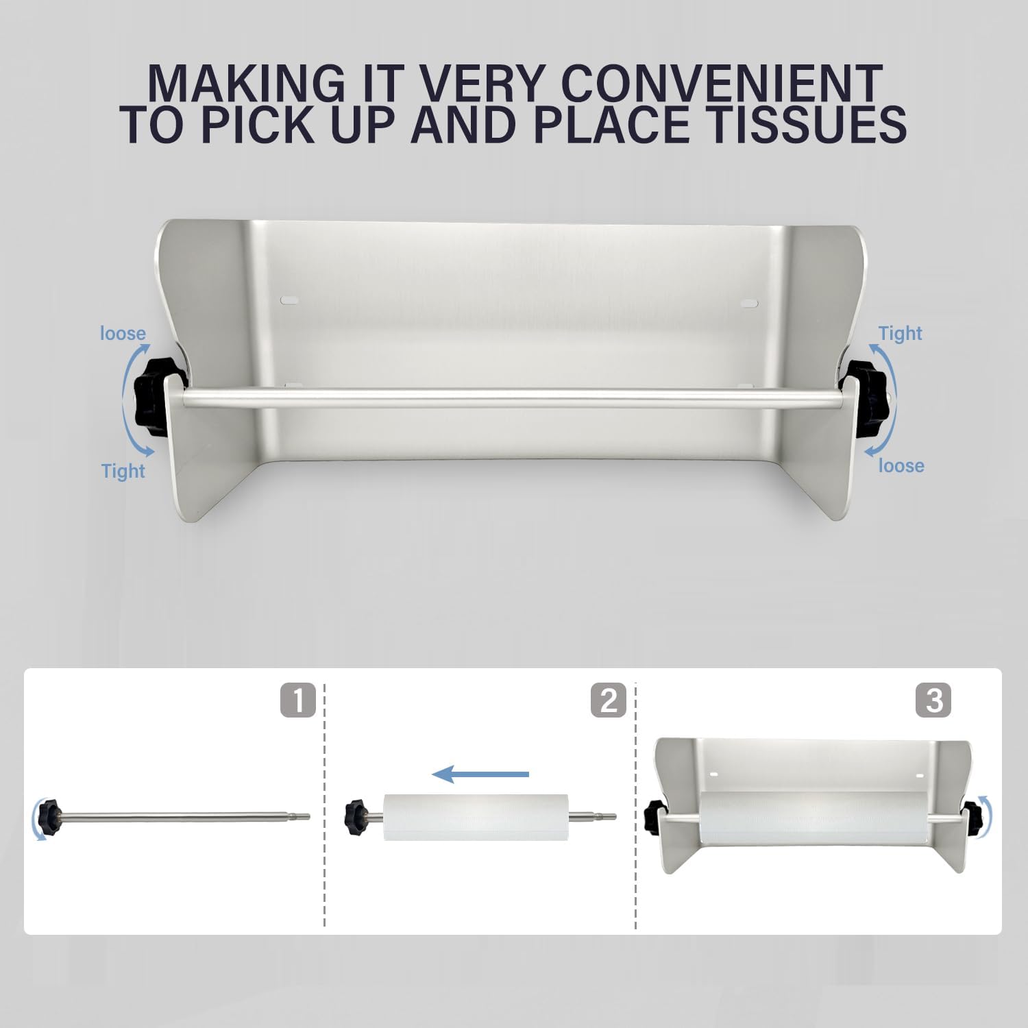 - 【Practical Design】 The store towel holder has an open design, it is very convenient to reach and place paper towels, the left and right end nuts are easy to release and fix it