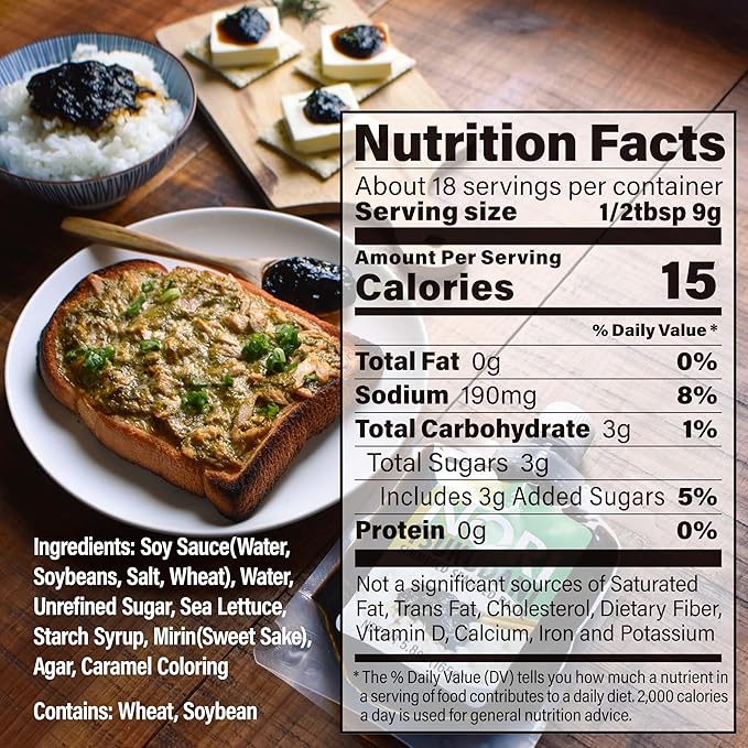 - 【Carefully crafted】 This condiment uses high-grade sea lettuce seaweed from Mie Prefecture, Japan. The seaweed is cooked slowly without being cut into pieces to preserve its aroma and flavor. The paste is smooth and easy to eat.