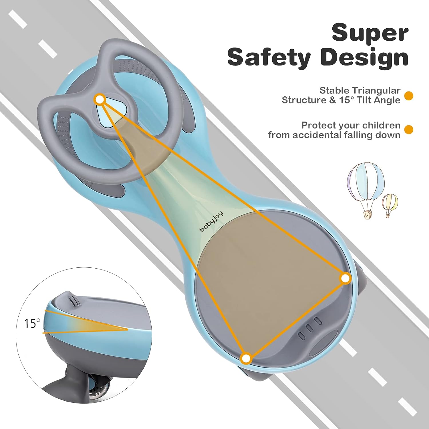 - Safe and Scientific Design: The wiggle car features a smooth and burr - free surface, safeguarding children from any accidental scratches. The specifically designed 15Β°dip angle is a clever addition, effectively preventing backward falls. The overhang front wheel is another safety - oriented design, preventing the ride on toy from toppling forward and rolling over. Additionally, the non - slip foot mats add an extra layer of safety, allowing kids to ride with confidence.