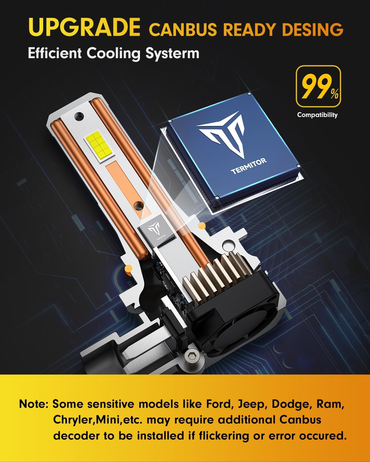 - 【Efficient Cooling for Long Life】HB3 HB4 headlight bulbs feature an aviation-grade aluminum alloy shell and a high-speed silent fan with a speed of 18,000 RPM,This product is a light emitting diode (LED) headlight modification kit and/or headlight component. The LED headlight modification kit and/or headlight components used for road vehicles must comply with the Federal Motor Vehicle Safety Standard . improving reliability and extending service life by maintaining optimal temperature during continuous driving conditions.