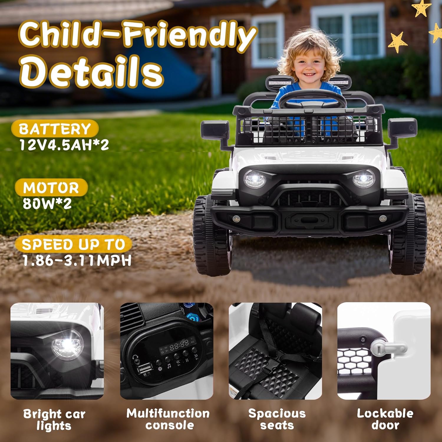 - 🎶 【Bluetooth & MP3 Music for Endless Fun】This 24V ride on toys features built-in Bluetooth and an MP3 music player, allowing kids to enjoy their favorite songs while driving. With adjustable volume control, it’s perfect for both indoor and outdoor use, adding to the excitement. Play your child's favorite music or educational audio and enhance the driving experience on this kids' electric truck.
