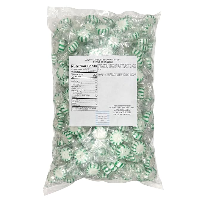 - 5 POUNDS OF STARLIGHT SPEARMINTS: Approximately 375 pcs bulk candy bag