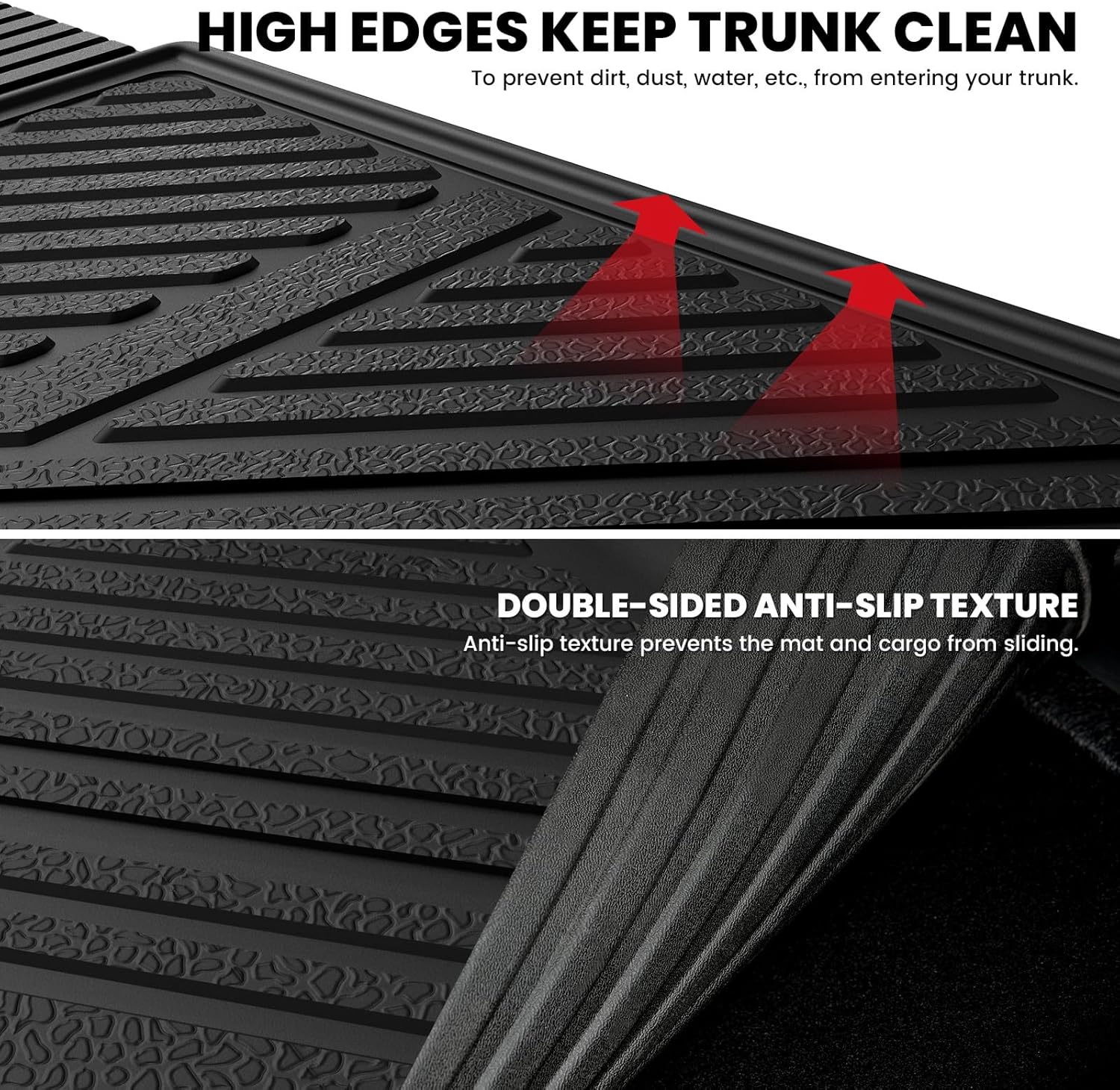 - ăAll-Weather Protectionă : Whether transporting daily essentials, work gear, outdoor equipment, or pets, the mats effectively guard against scratches and wear. The full-coverage design and raised lip edges prevent snow, water, mud, or sand from seeping through gaps, keeping your car looking brand new all year round. The strong Velcro and dual-sided anti-slip texture securely hold mats and items in place for worry-free use.