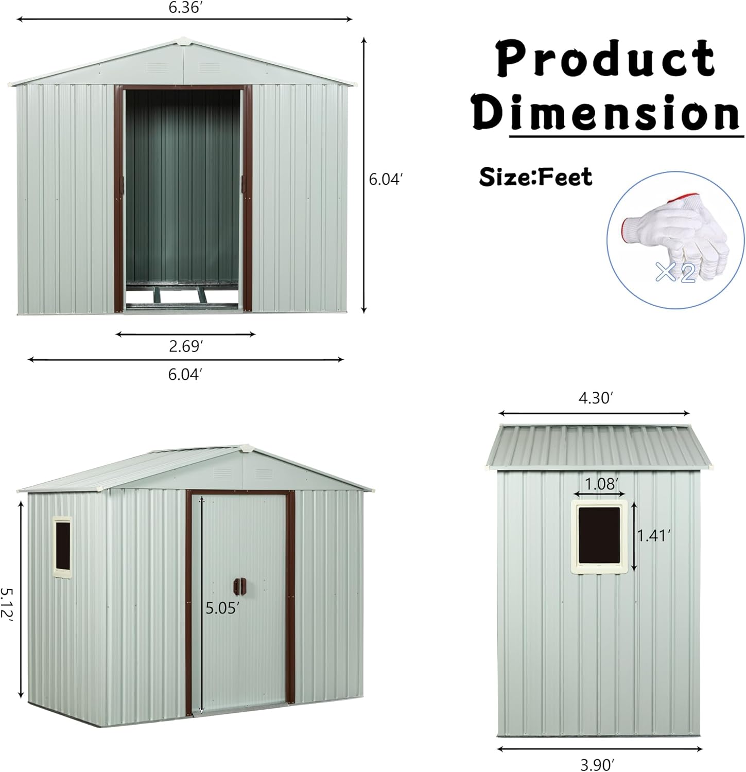 - ๐ก๐๐ฅ๐ฅ-๐ฐ๐๐๐ญ๐ก๐๐ซ ๐๐ญ๐จ๐ซ๐๐ ๐ ๐๐ก๐๐: Our metal shed 6x5 features smooth sliding doors with handles and a heavy-duty lock for enhanced security. This practical storage building is perfect for storing gardening tools or serving as a warm pet house. The sloped roof effectively prevents leaks and snow buildup, while the transparent side window provides soft natural light. Four integrated punched vents improve airflow, keeping items dry and well-preserved in any weather conditions.