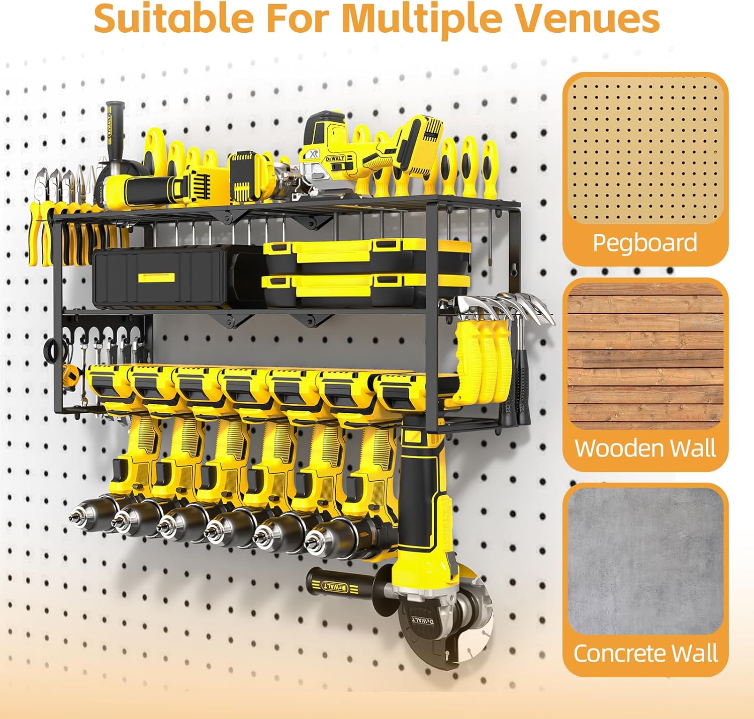 - Sturdy Enough for Cordless Drills and Batteries:This Power Tool Organizer Wall Mount is made from durable materials like heavy compact steel metal and has 3 layers. This power tool holder can hold up to 150 pounds on the wall, so it is sturdy enough to hold heavy tools. You donβt need to worry about this power tool rack broken or tools falling off.