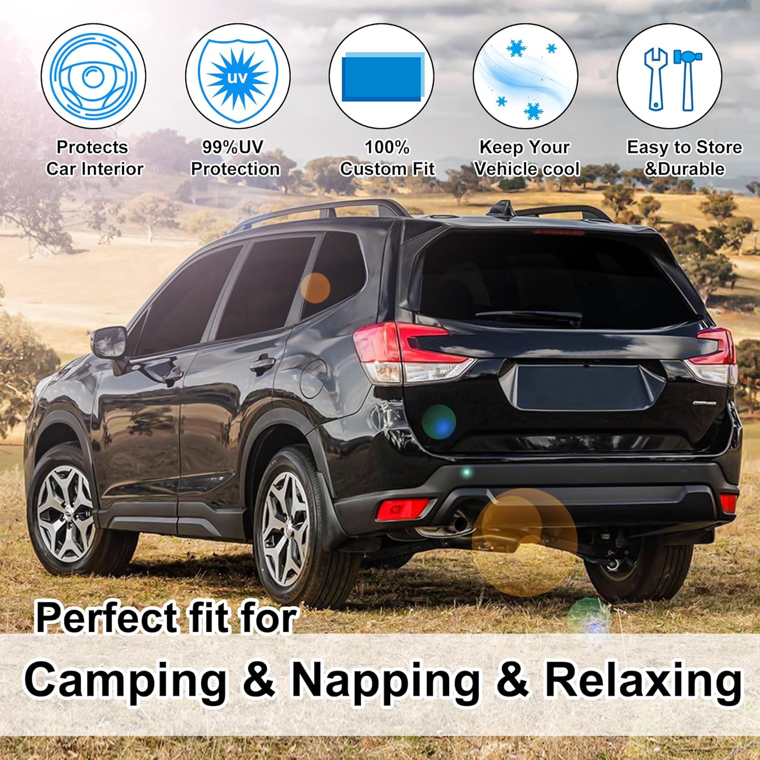 - Customized Design:The sun shade custom fit for Subaru Forester 2019 2020 2021 2022 2023 2024.Our window shade is according to the car size design,perfectly fit your car and does not need to trim.windshield sun shade solve the problem of light leakage and incompatibility of the old umbrellas.The sunshade designed for Subaru Forester.