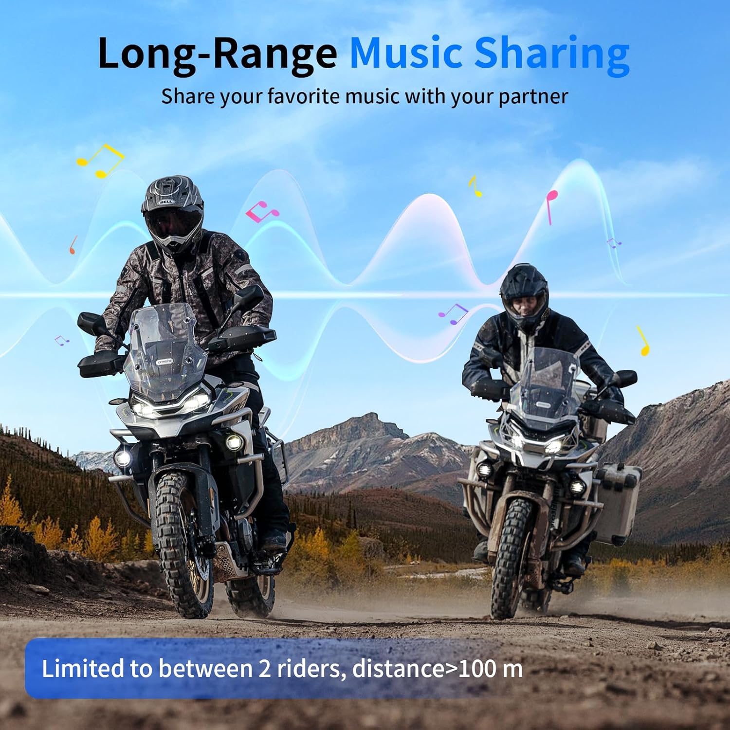 - Long-Distance Music Sharing: Enjoy your favorite playlist while driving thanks to the music sharing function of the Fodsports M1-S Air. Simply connect your phone or MP3 player via Bluetooth, and listen to your favorite songs with your friends during the ride