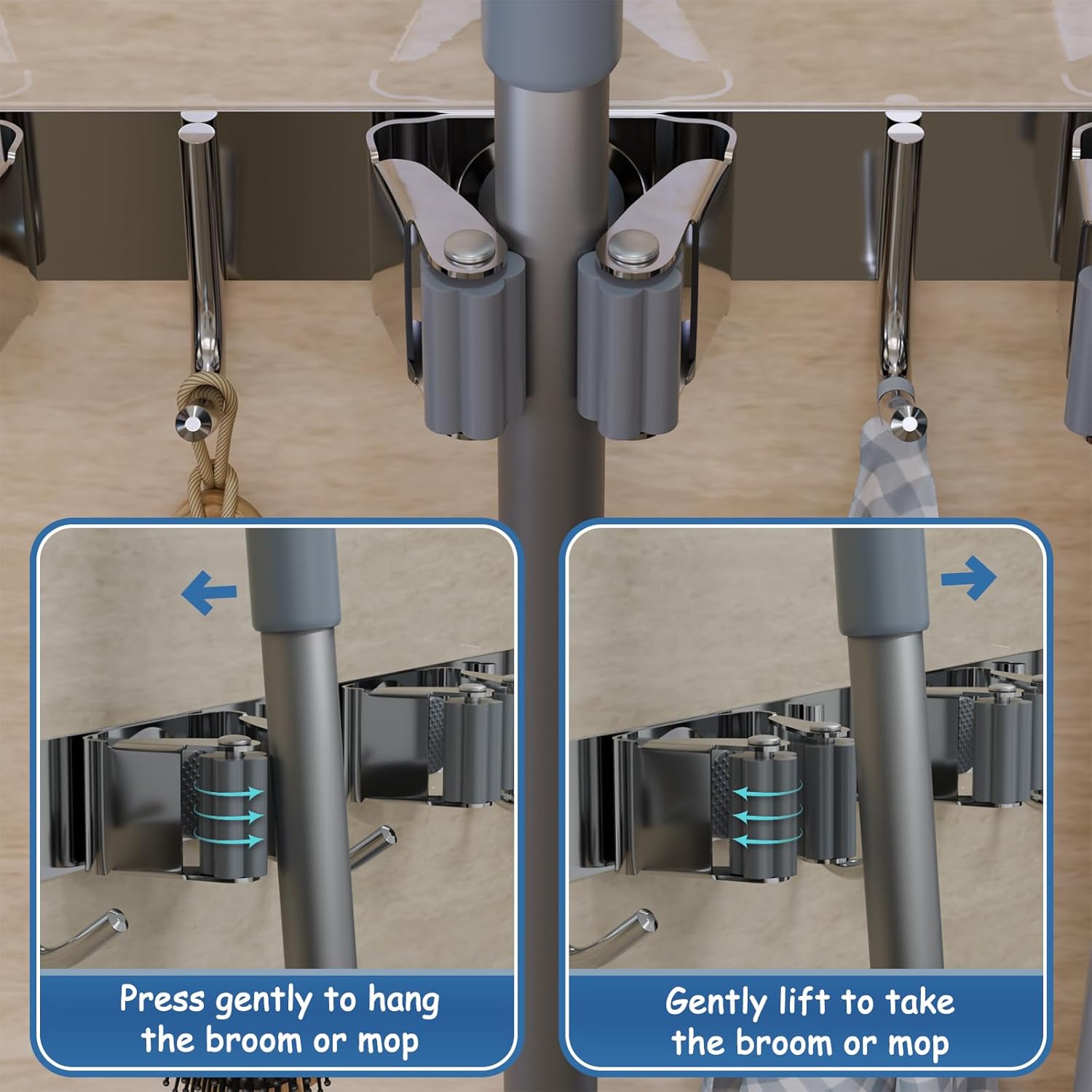 - 【Versatile & Cost-Effective】Compatible with most brands of brooms and mops, this rack eliminates the need for multiple holders by organizing all your cleaning tools in one place. It’s a budget-friendly upgrade for clutter-free living.