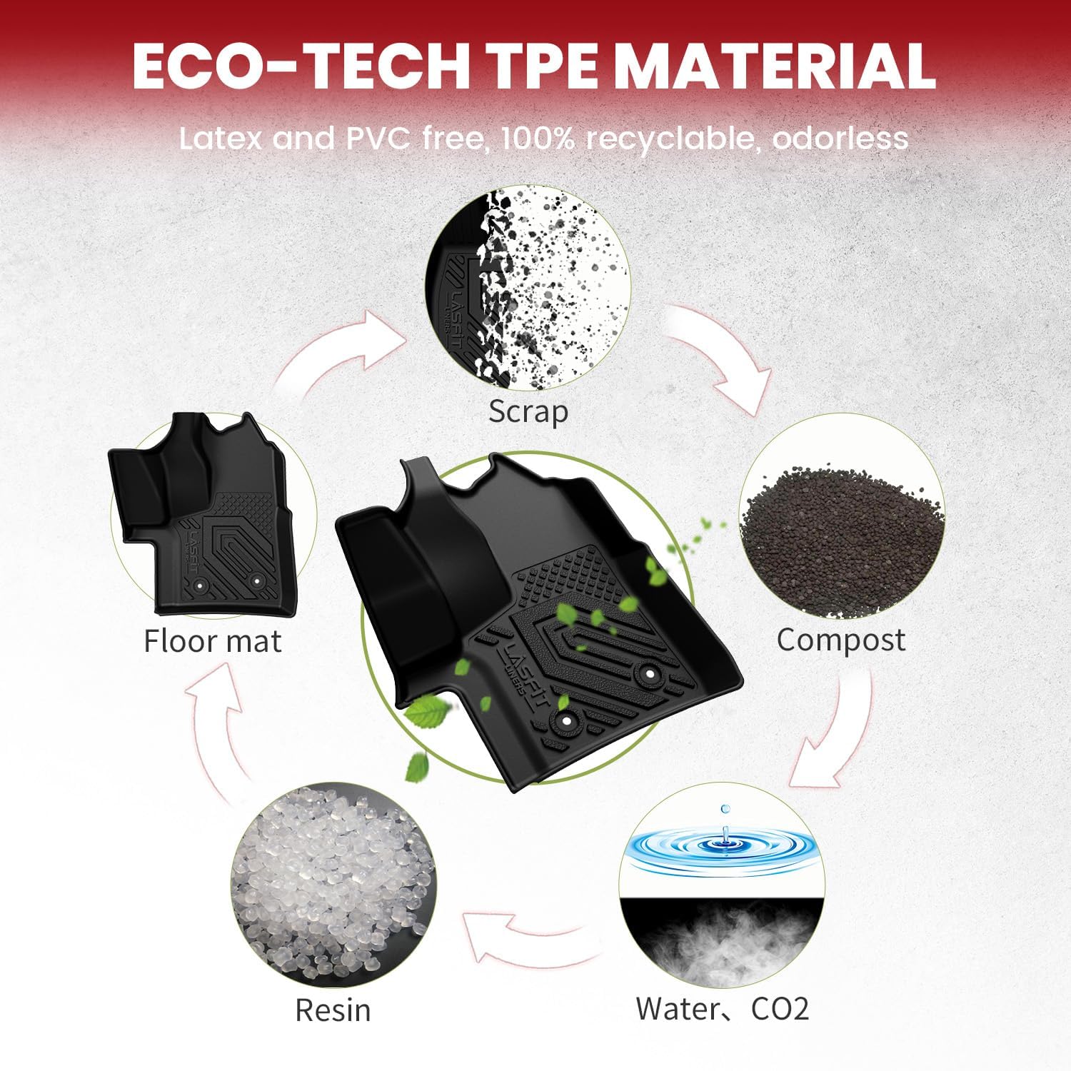 - ăTPE: Safe & DurableăLASFIT floor mats for Ford Transit 150/250/350/350HD 2025 are made of 100% high quality TPE material, which combines environmental friendliness and durability perfectly. TPE is safe, healthy, and non-smelly, providing all-around safety for you, your family, kids and pets. TPE is also durable and resistant to deformation, ensuring mats remain in original shape for a long time without worrying about seasonal heat or extreme cold weather