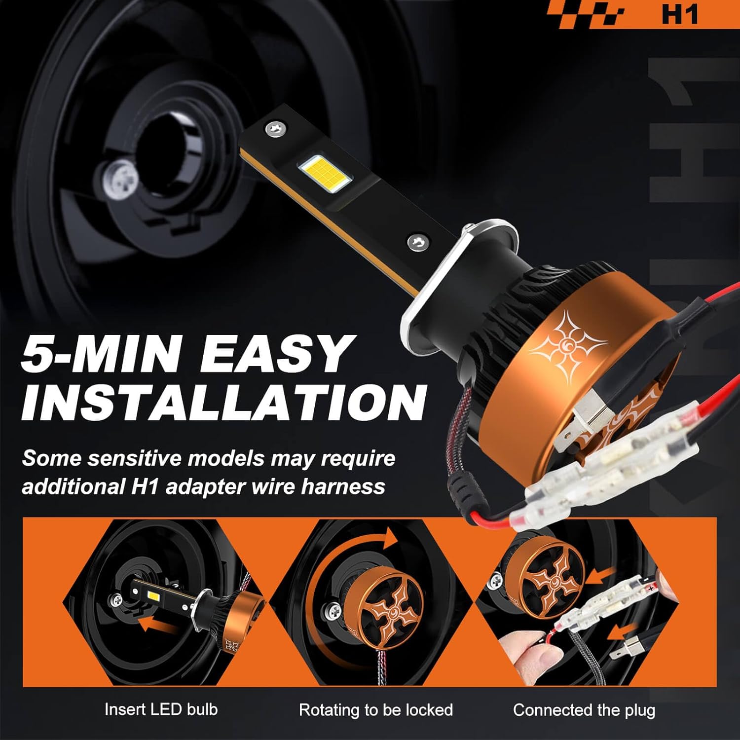 - 30000LM Enhanced Visibility: HIKARI LED bulbs feature advanced chip technology, delivering a maximum output of 30,000 lumens to ensure excellent visibility and safety on the road. These bulbs provide a clear view of up to 1,800 feet, offering with superior road coverage in rainy, foggy, or low-visibility conditions.