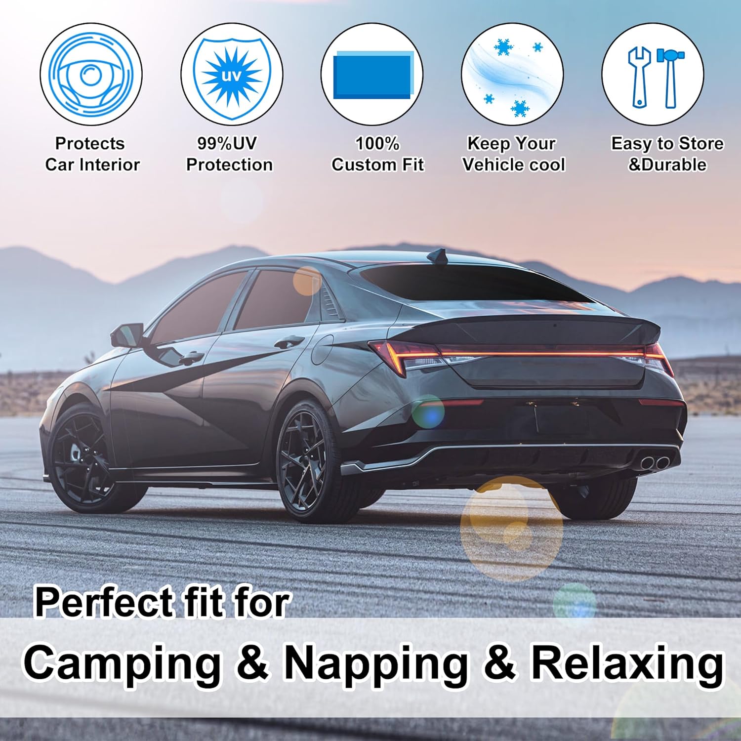 - Customized Design:The sun shade custom fit for Hyundai Elantra 2021-2024 2025.Our window shade is according to the car size design,perfectly fit your car and does not need to trim.windshield sun shade solve the problem of light leakage and incompatibility of the old umbrellas.The sunshade designed for Hyundai Elantra.