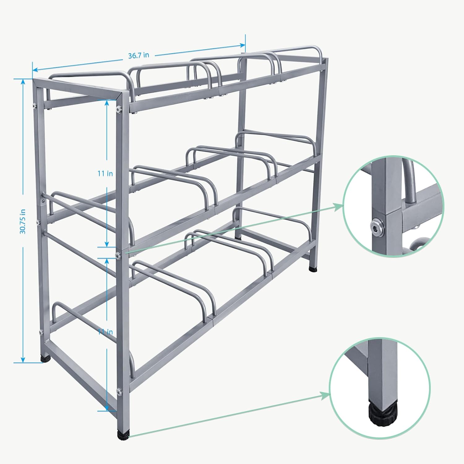- Space-Saving & Versatile Design: Perfect for small spaces, this 3-tier water jug storage rack fits seamlessly in homes, offices, garages, and more. It can store a weekβs supply of water for 10-12 people and accommodates both 3-gallon and 5-gallon jugs without wobbling, maximizing space efficiency.