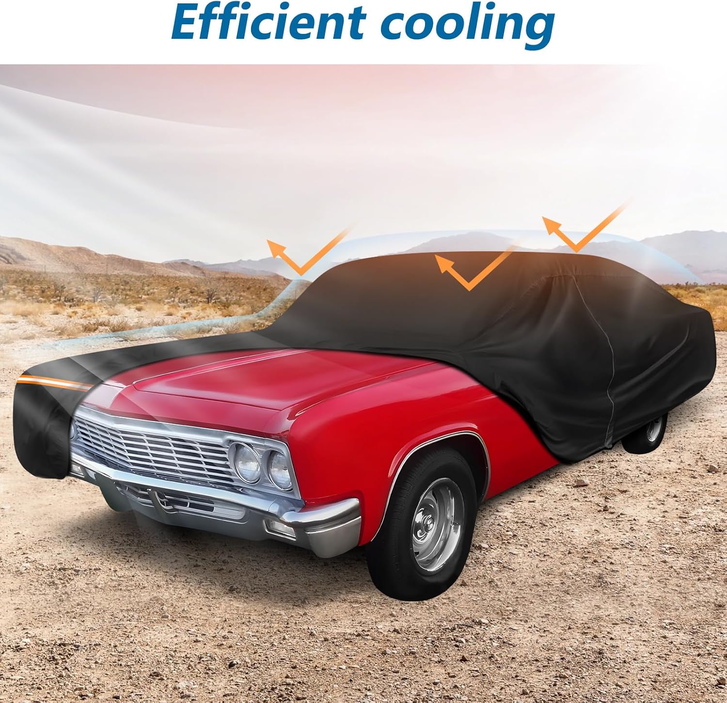 Car Cover for Chevy Caprice 2/4 Door Coupe/Sedan 1966-1996, Waterproof 210D Oxford Cloth and Cotton Cover Outdoor Full Car Covers with Zipper Windproof Heavy Duty All Weather Protectio