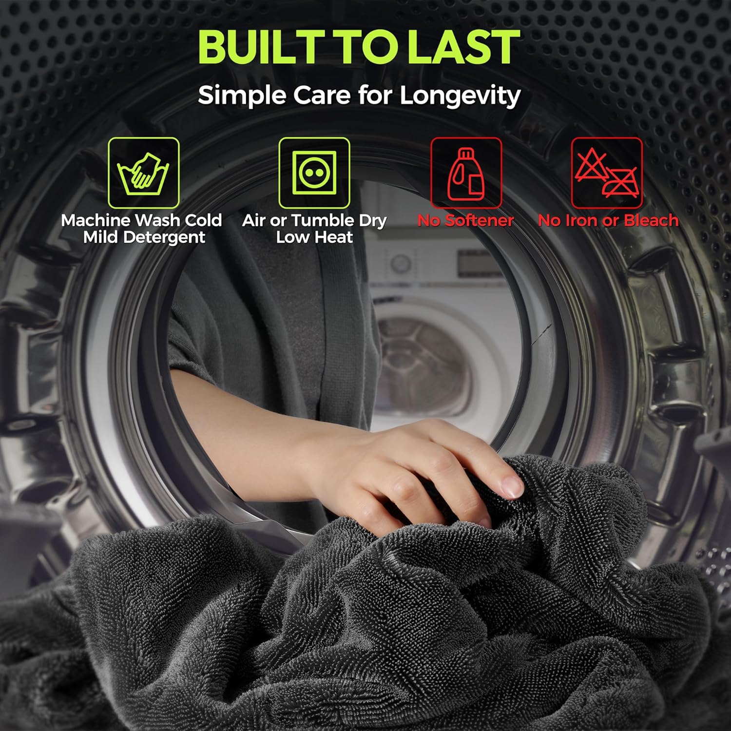 - ๐โจ๐๐๐ฟ๐ฎ๐ฏ๐น๐ฒ & ๐๐ผ๐ป๐ด-๐๐ฎ๐๐๐ถ๐ป๐ด - Built for Years of Use - Invest in quality that endures. Our reinforced construction ensures no shedding and maintains peak performance wash after wash. Simply machine wash cold and tumble dry low to restore its like-new absorbency. This durable towel is designed to be your trusted detailing companion for years to come, delivering consistent, professional results that make every car care session a success.