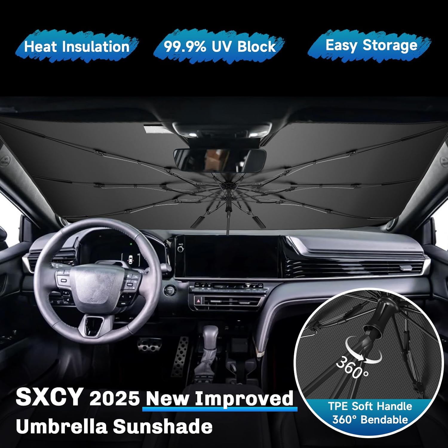 - 1. Sun & Heat Insulation: Windshield Umbrella Sunshade for 2025 Camry Accessories, 99.9% UV protection, upgraded wrinkle-resistant fabric reflects heat, keeps car cool. Protects interior from fading & cracking, ensuring comfort on hottest days