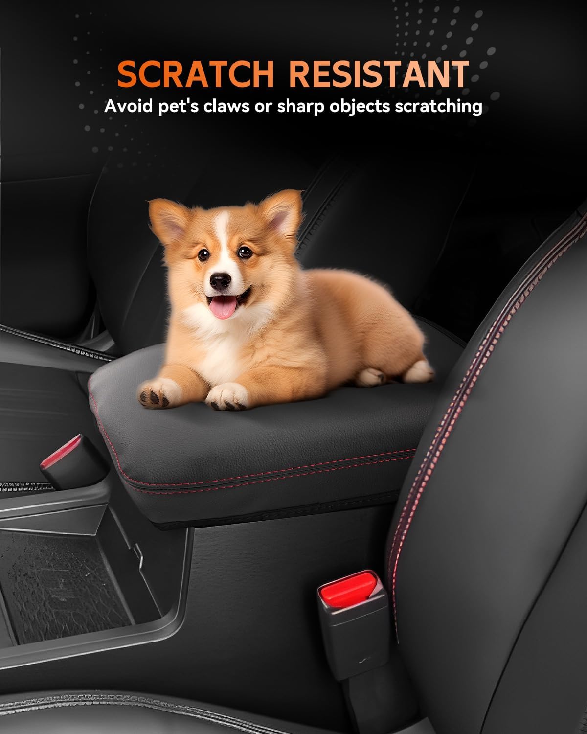 - [Easy To Install] Designed with a Velcro strap to secure it to the center console (no tools required). With super stretch and pull resistance, it will not change the open/close function of the armrest box.