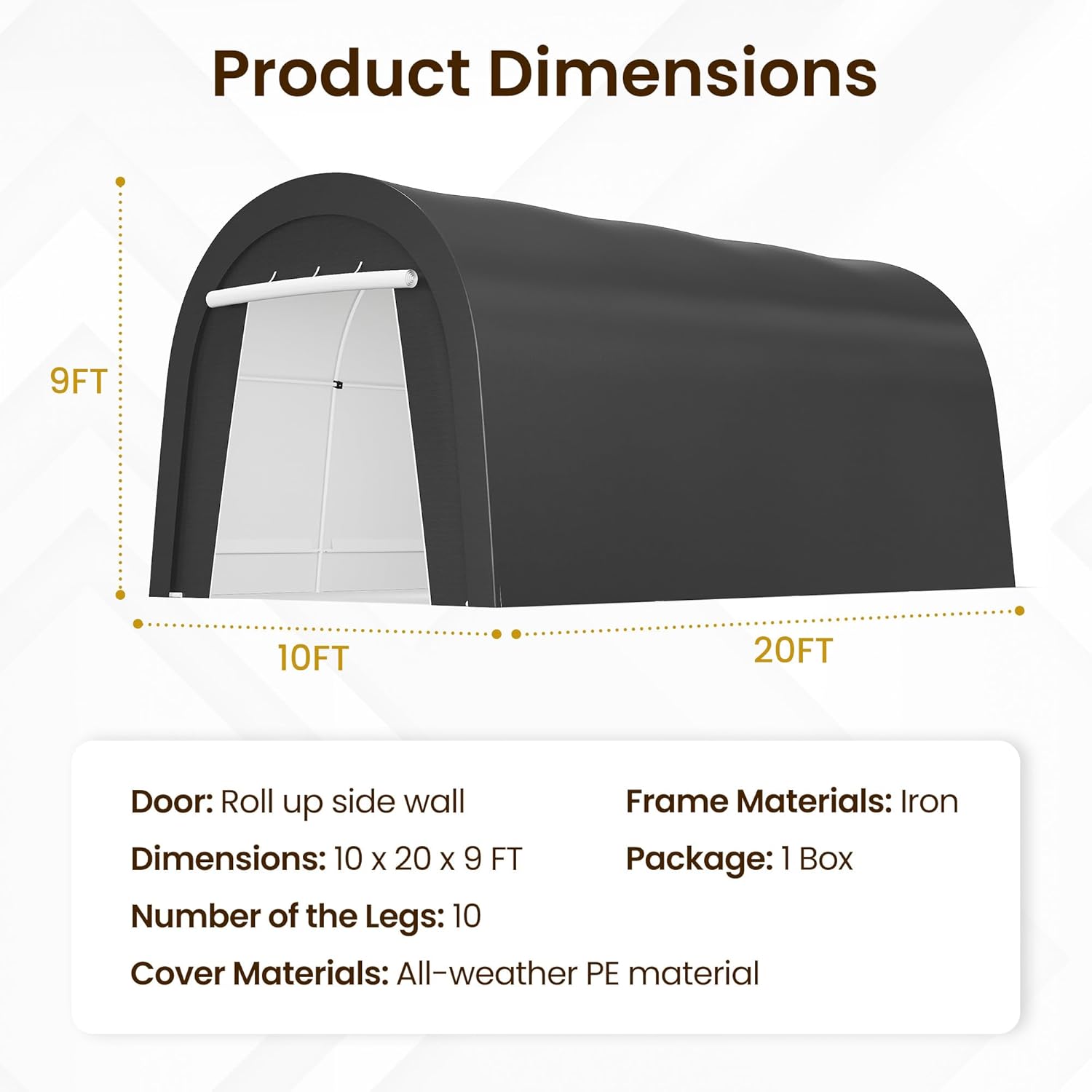 Kiss the Water Carport, Round Portable Garage, Steel Heavy Duty Carport with Ground Stakes, Tensioner and 2 Roll Up Windows PE Fabric Car Port, Garage, Storage Shed, Tent for Storage, SUV (10x20 Ft)
