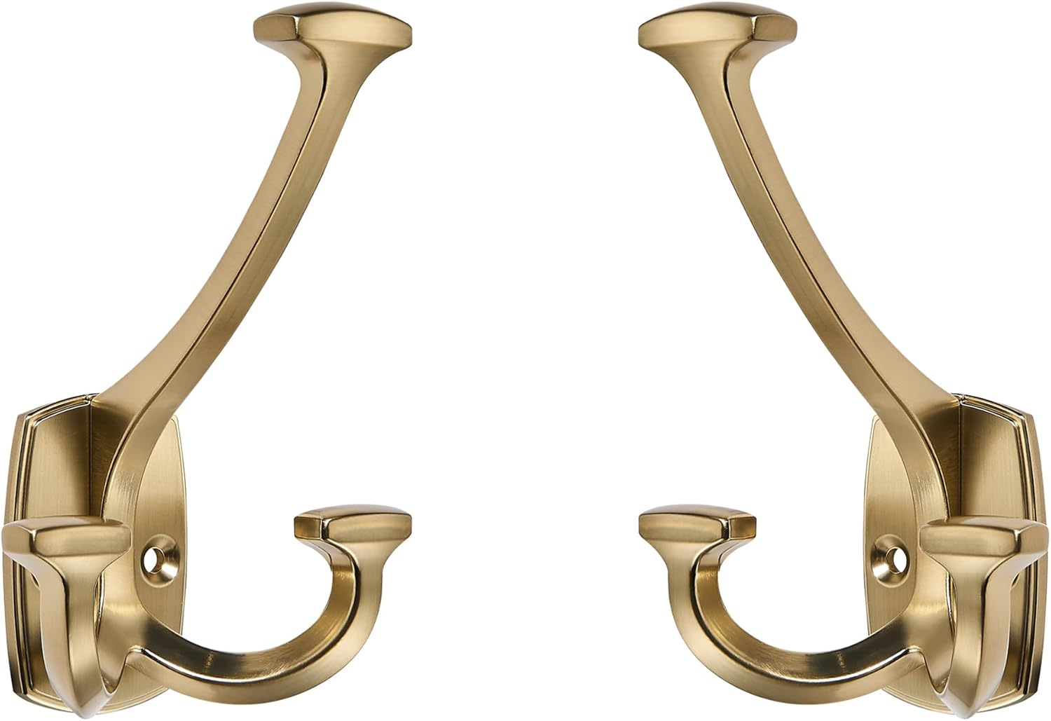 Large Wall Double-Sided Hook 5 Pack Champagne Brozne Hook Decorative Heavy Duty Solid Large Coat Hooks for Towel Hanging Coats Robe Towel Bags Door Back 2 Prong Hooks