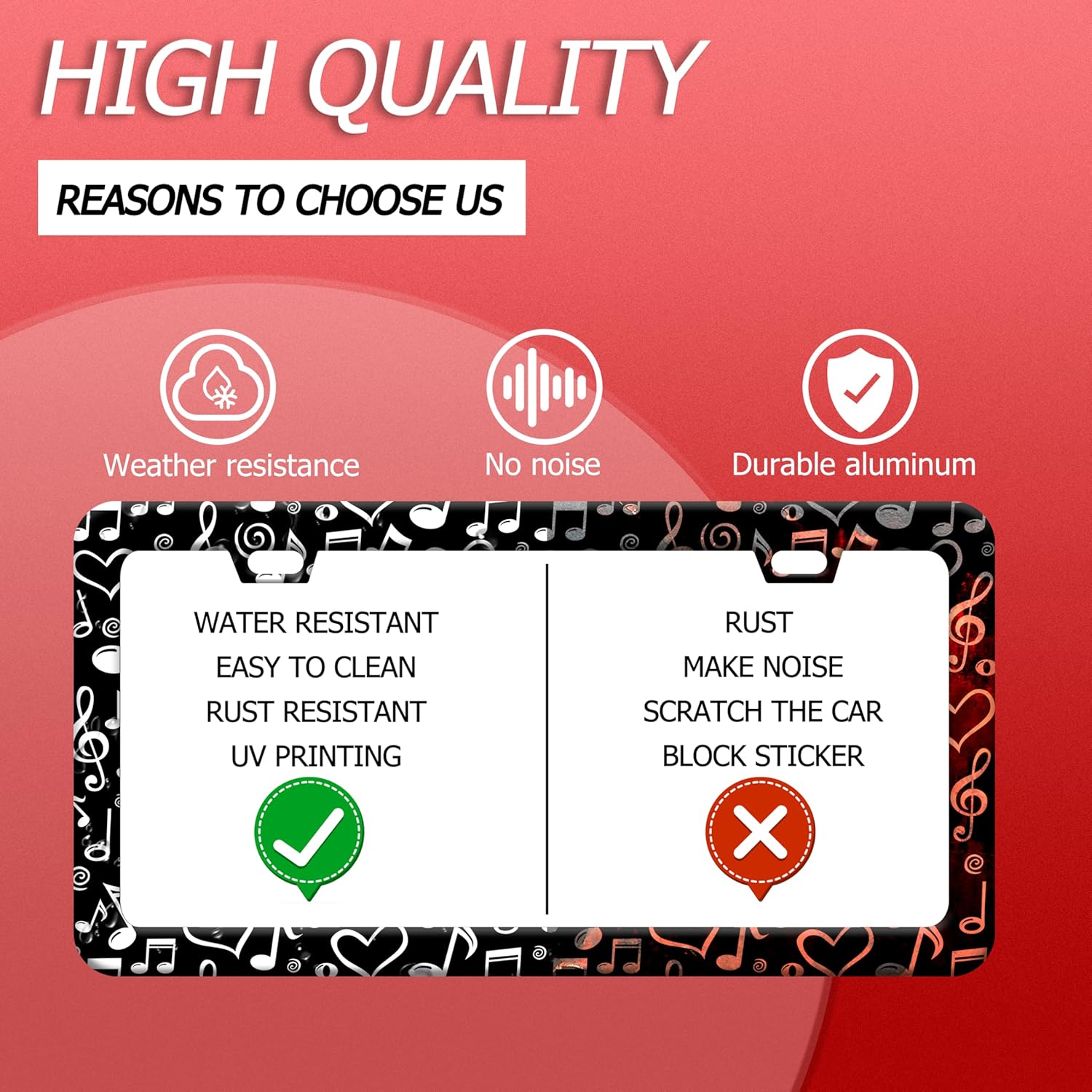 Music Note License Plate Frame Funny Musical License Plate Frames Stainless Steel Accessories Cars Decor with 2 Holes and Screws Fits Standard Us Ca Vehicles License Plate Holder 12.2 X 6 Inch