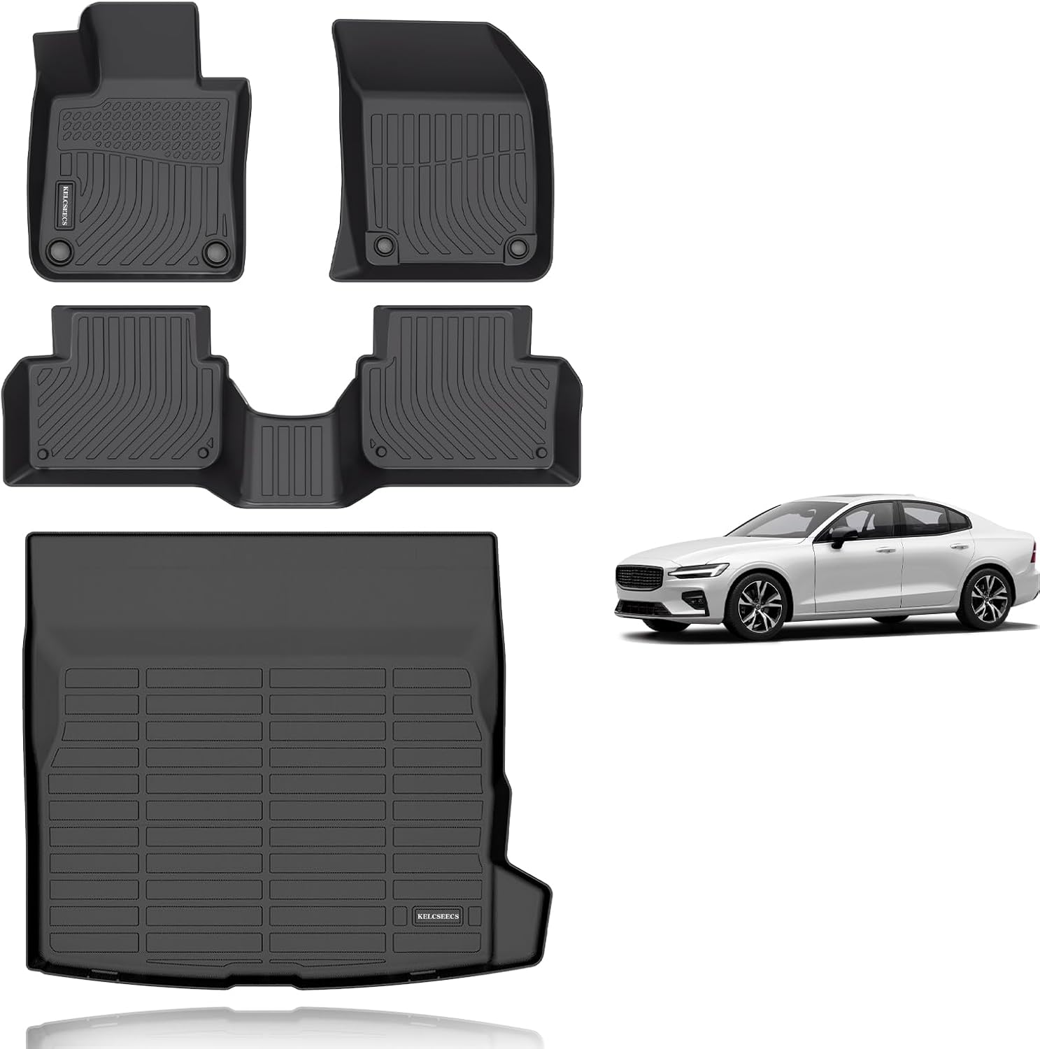 KELCSEECS® Floor Mats & Cargo Liner Custom for 2019-2025 Volvo S60(Not for Recharge) All Weather Protection TPE Floor Liners Front& Rear Row Full Set Volvo S60 Accessories Black
